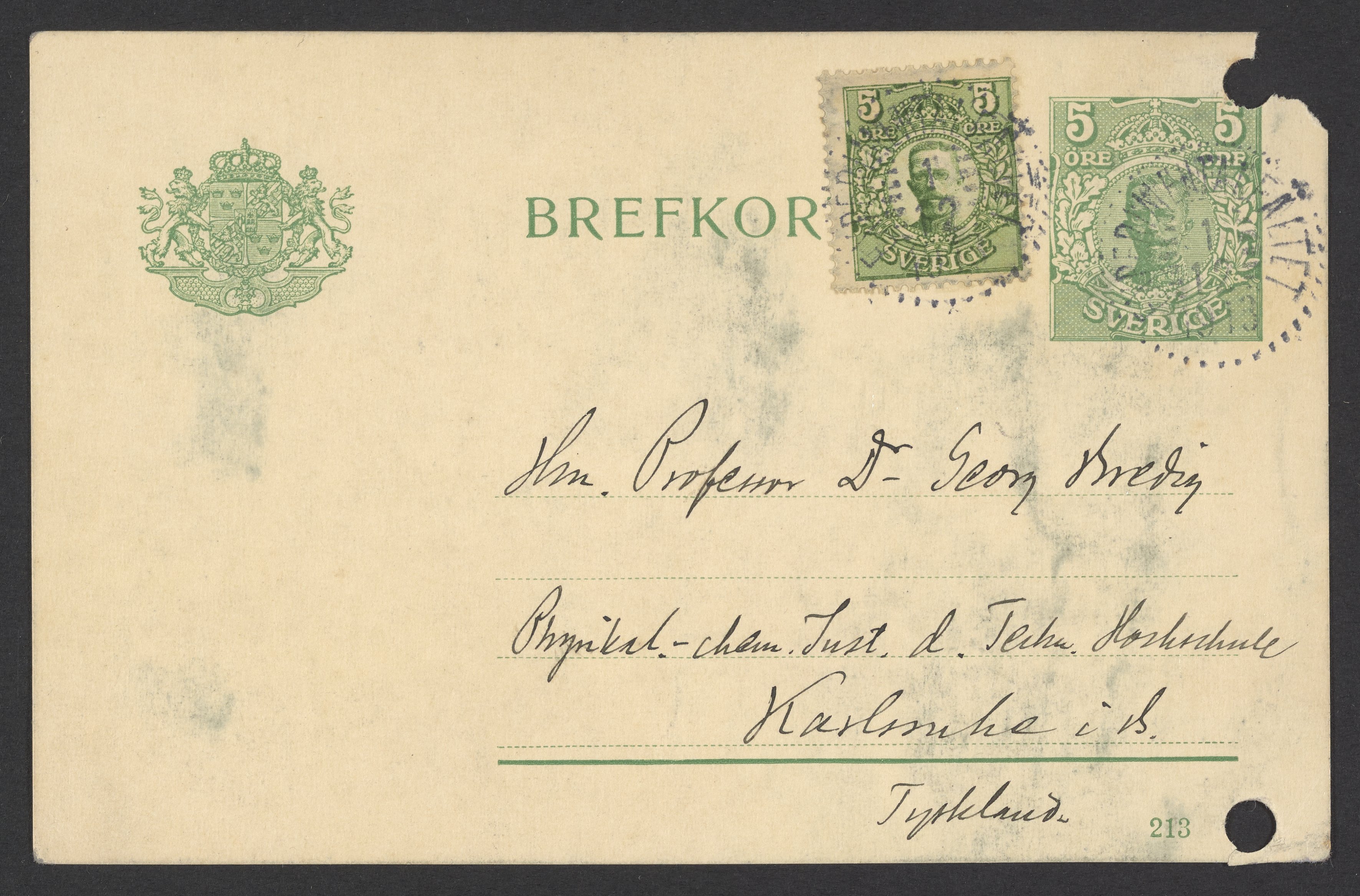 Arrhenius, Svante. “Postcard from Svante Arrhenius to Georg Bredig, December 1913,” December 1, 1913. Papers of Georg and Max Bredig, Box 1, Folder 5. Science History Institute. Philadelphia. https://digital.sciencehistory.org/works/onresf6.