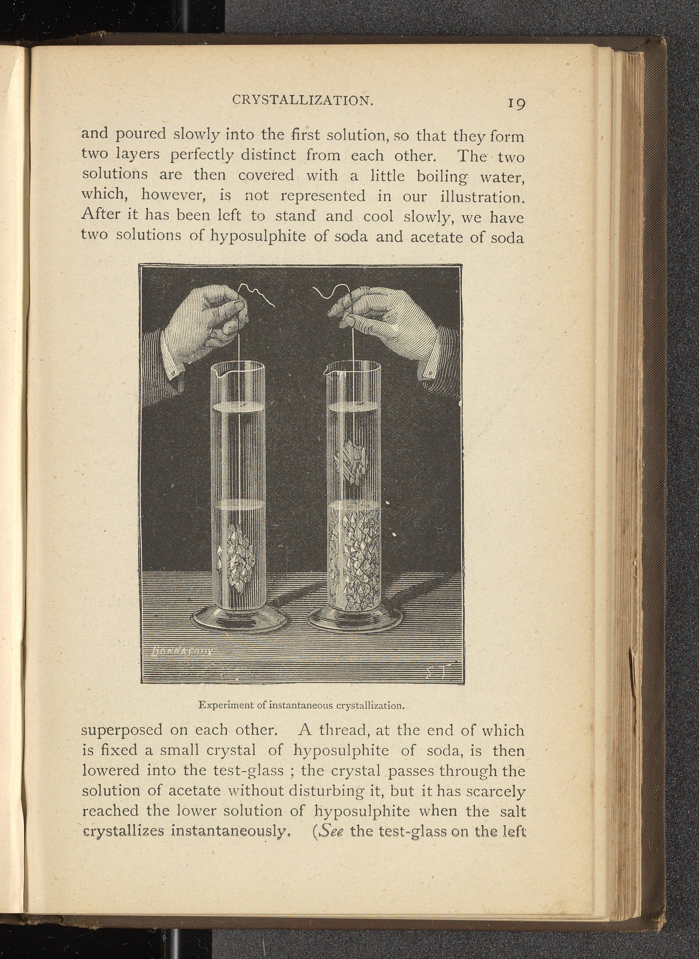 Ward, Lock. “Experiment of Instantaneous Crystallization.” Wonders of Electricity and the Elements, Being a Popular Account of Modern Electrical and Magnetic Discoveries, Magnetism and Electric Machines, the Electric Telegraph and the Electric Light, and the Metal Bases, Salt, and Acids. London, England, 1870–1900. https://digital.sciencehistory.org/works/opvi84x.
