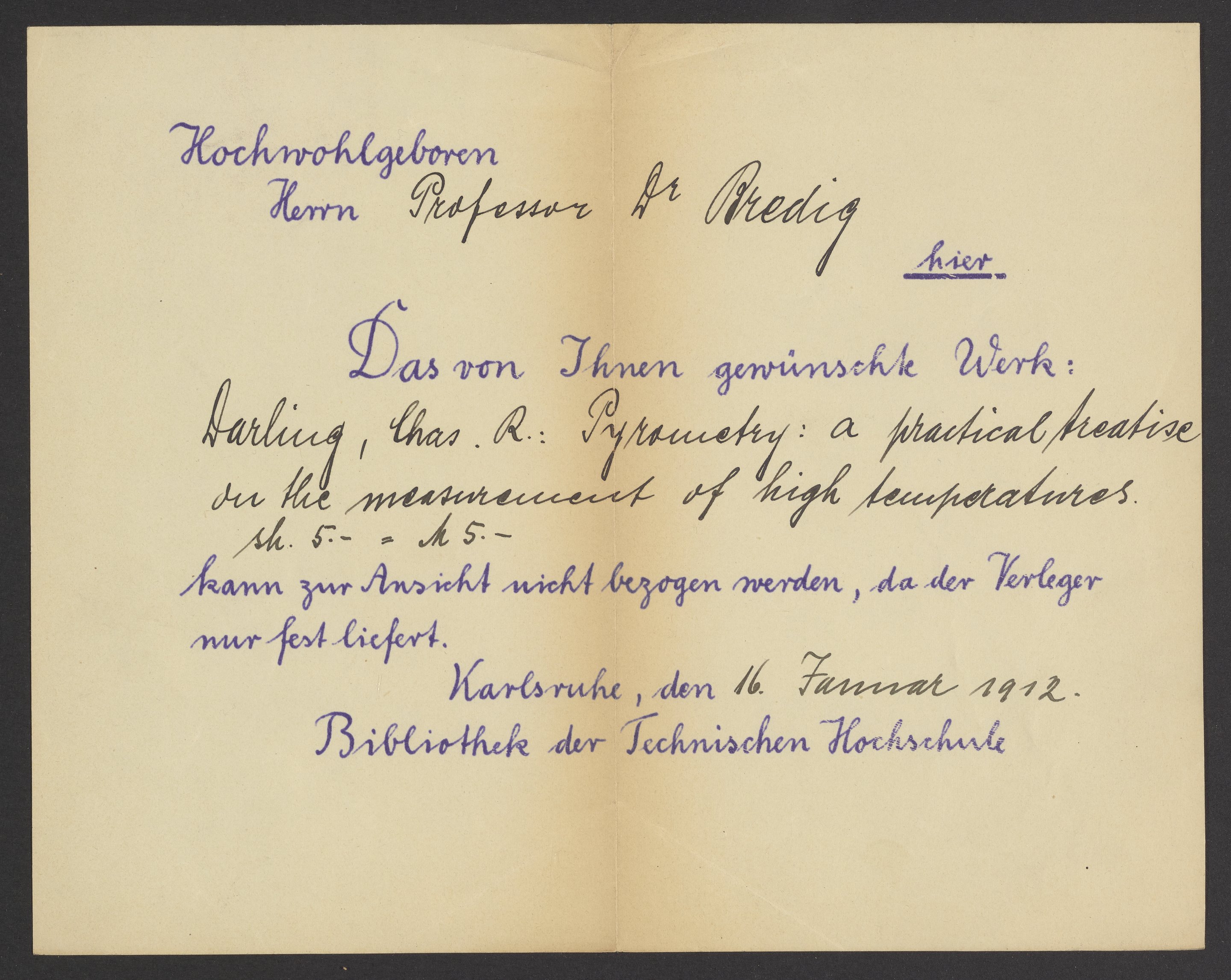 Check out slips from the Library of the Technical University of Karlsruhe