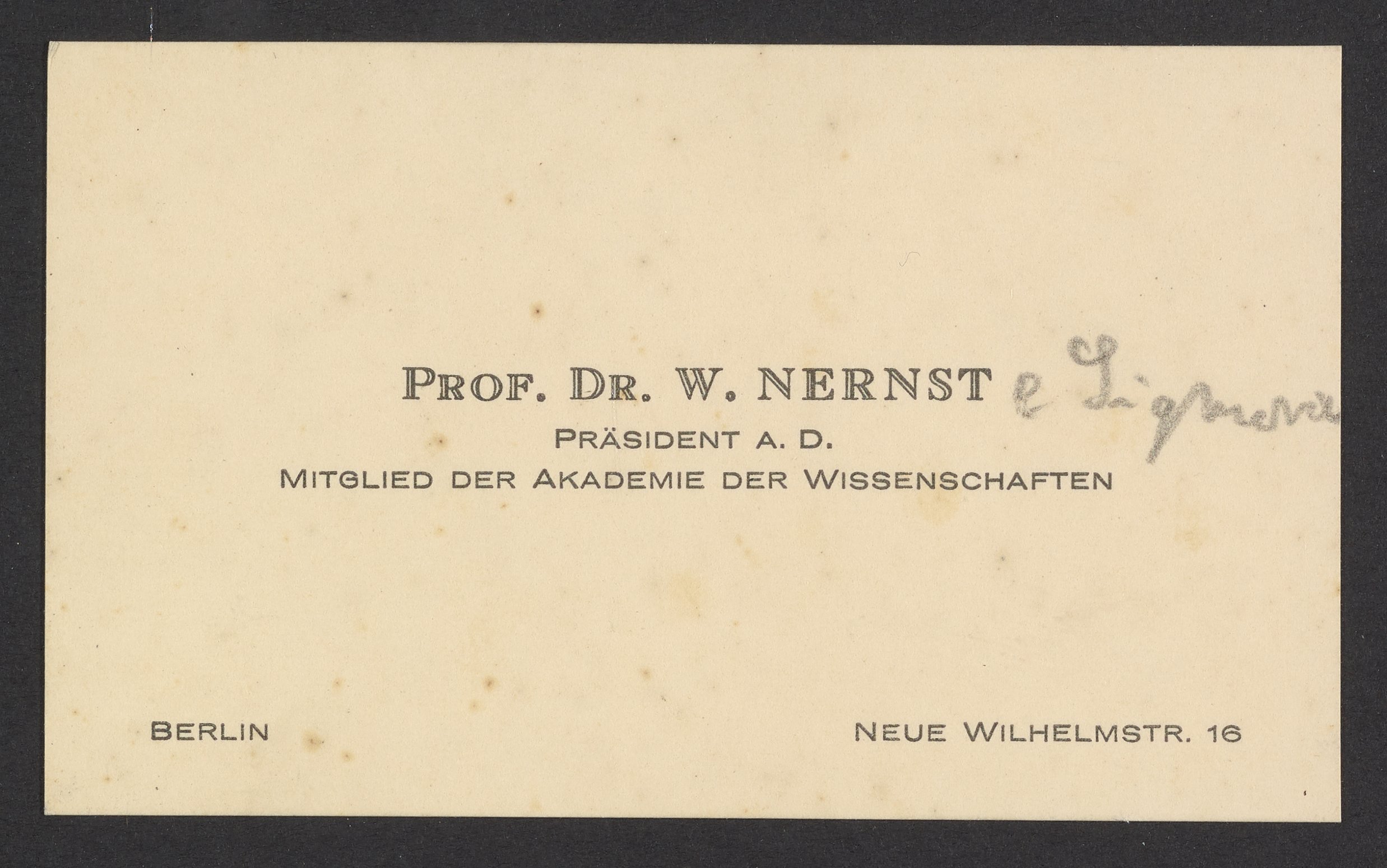 Walther Nernst's personal calling card