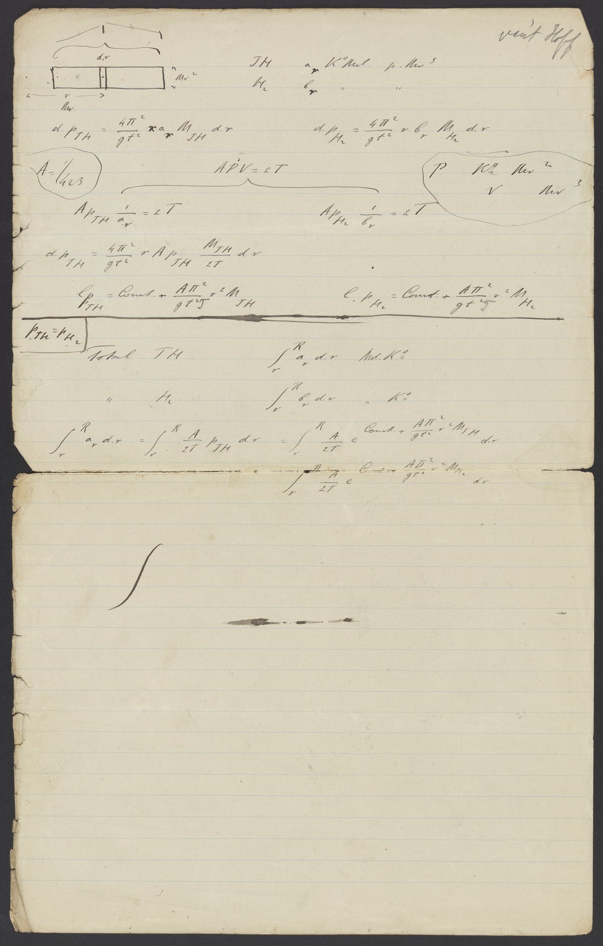 Small JPG1200 x 1882px — 246 KBLarge JPG2880 x 4518px — 1.4 MBFull-sized JPG5355 x 8400px — 4.5 MBOriginal fileTIFF — 5355 x 8400px — 129 MBNotes handwritten by Dutch physical chemist, Jacobus H. van’t Hoff (1852-1911). Van’t Hoff was the first winner of the Nobel Prize in chemistry in 1911 and is considered to be one of the lead pioneers of the field of physical chemistry.