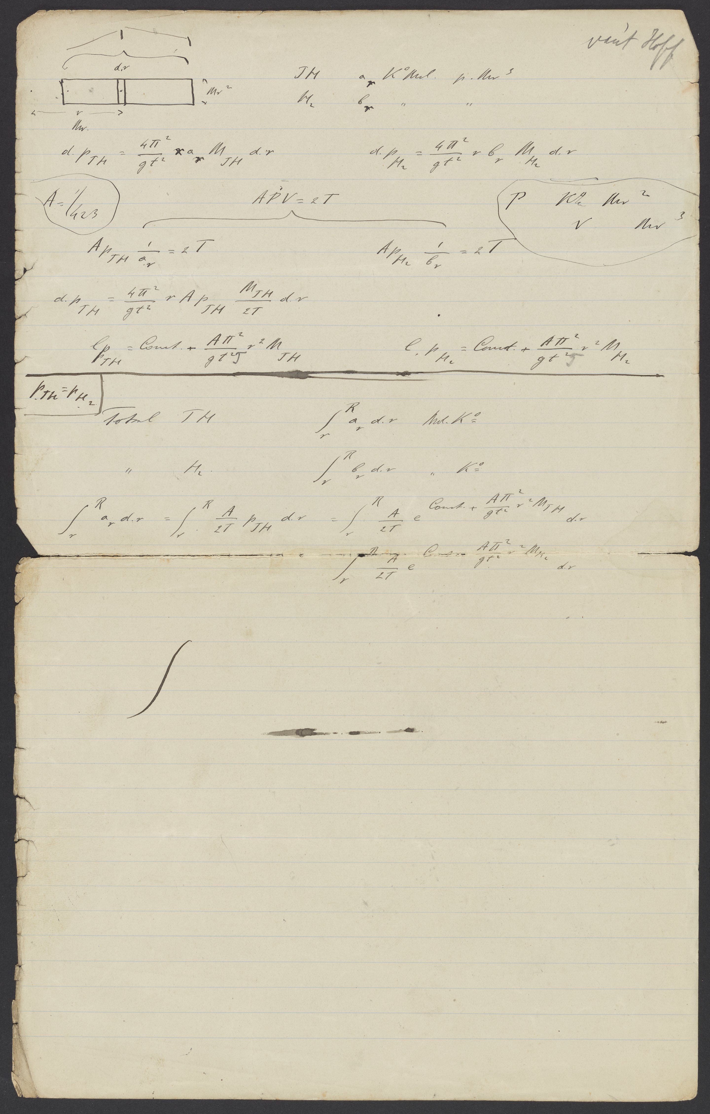 Small JPG1200 x 1882px — 246 KBLarge JPG2880 x 4518px — 1.4 MBFull-sized JPG5355 x 8400px — 4.5 MBOriginal fileTIFF — 5355 x 8400px — 129 MBNotes handwritten by Dutch physical chemist, Jacobus H. van’t Hoff (1852-1911). Van’t Hoff was the first winner of the Nobel Prize in chemistry in 1911 and is considered to be one of the lead pioneers of the field of physical chemistry.