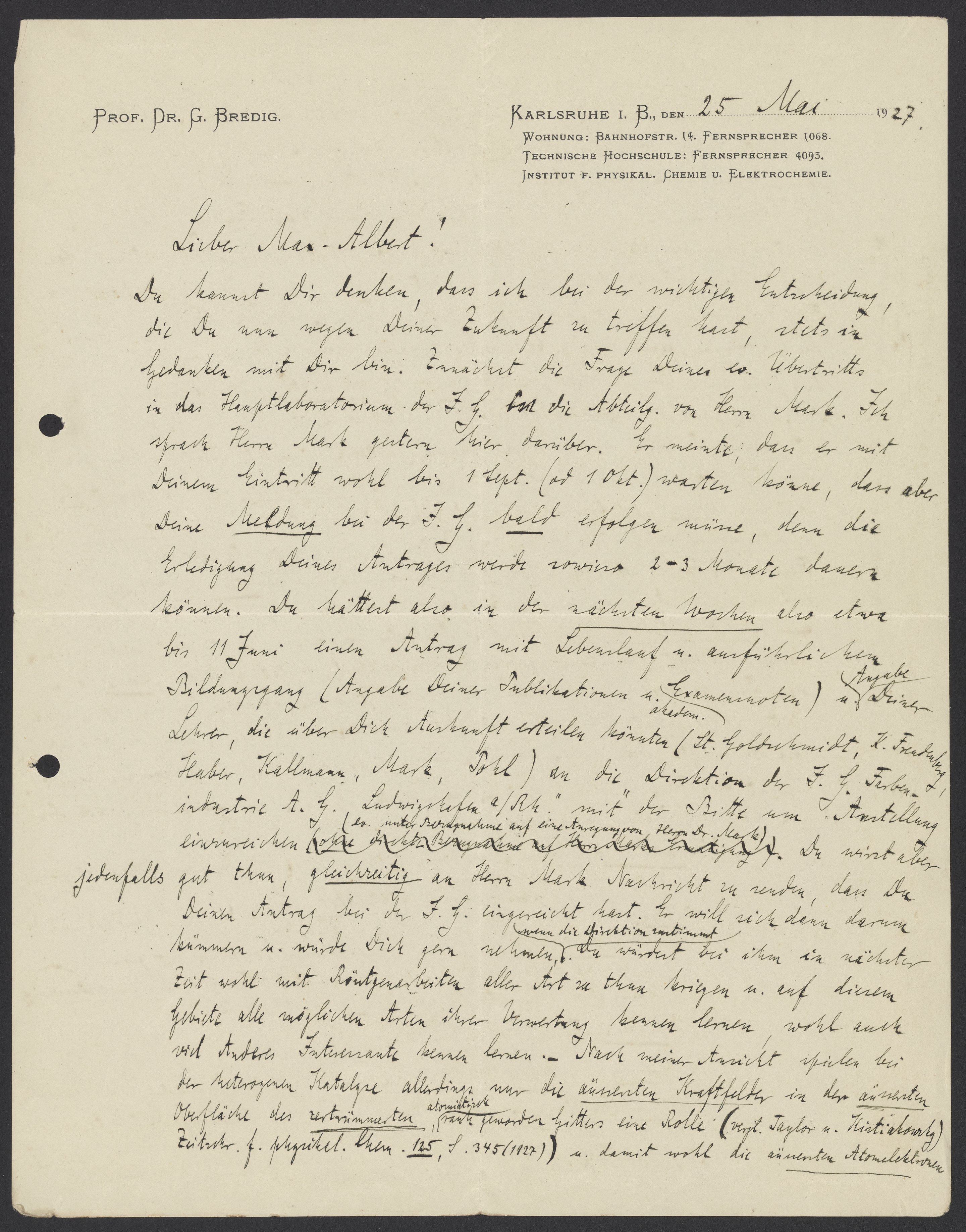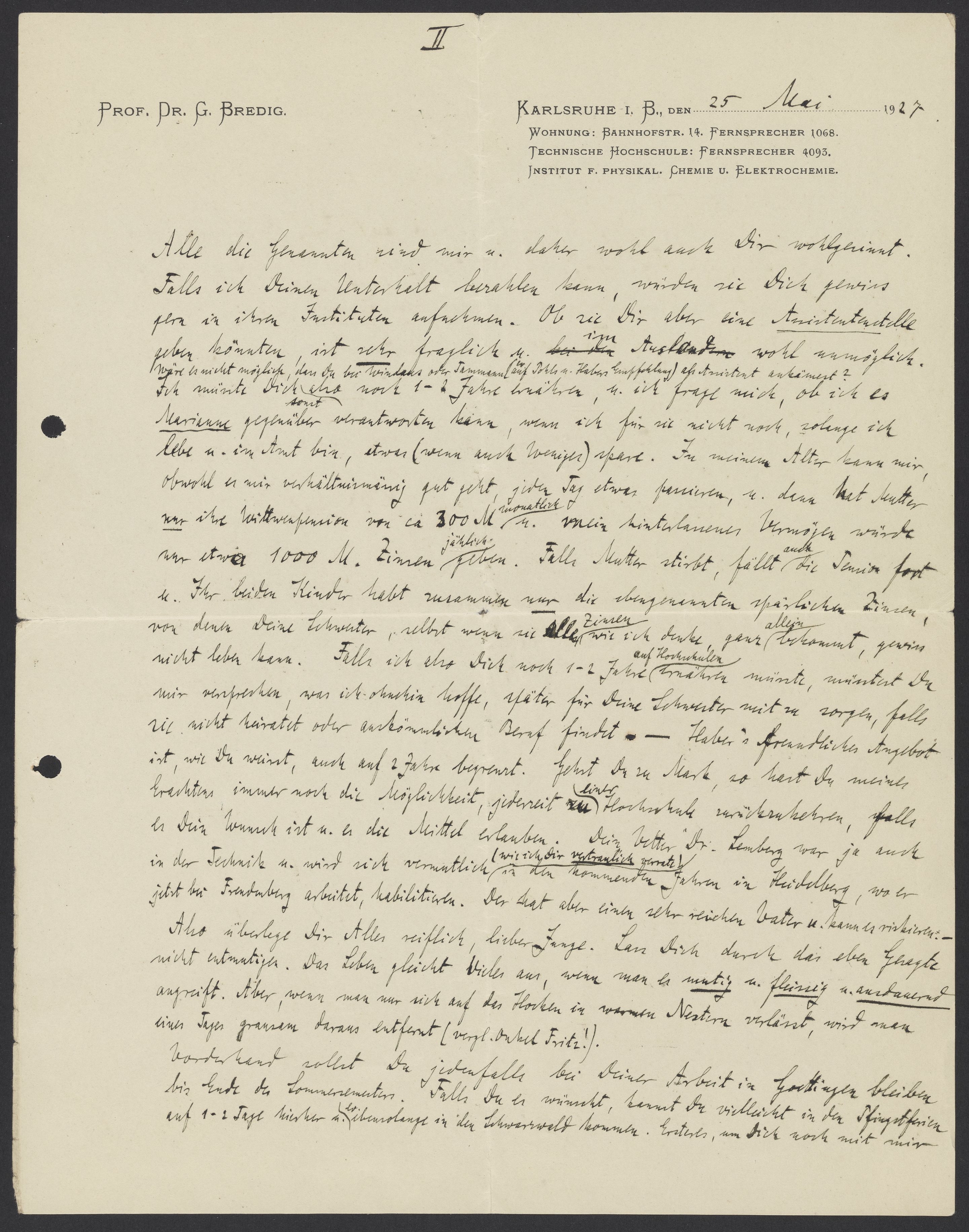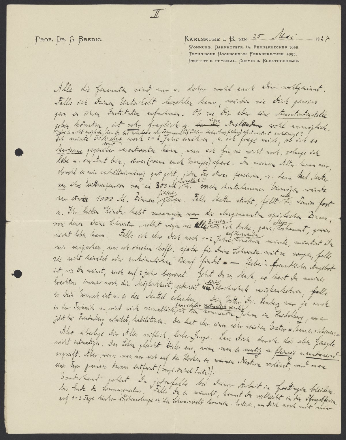 Letter from Georg Bredig to Max Bredig, May 25, 1927
