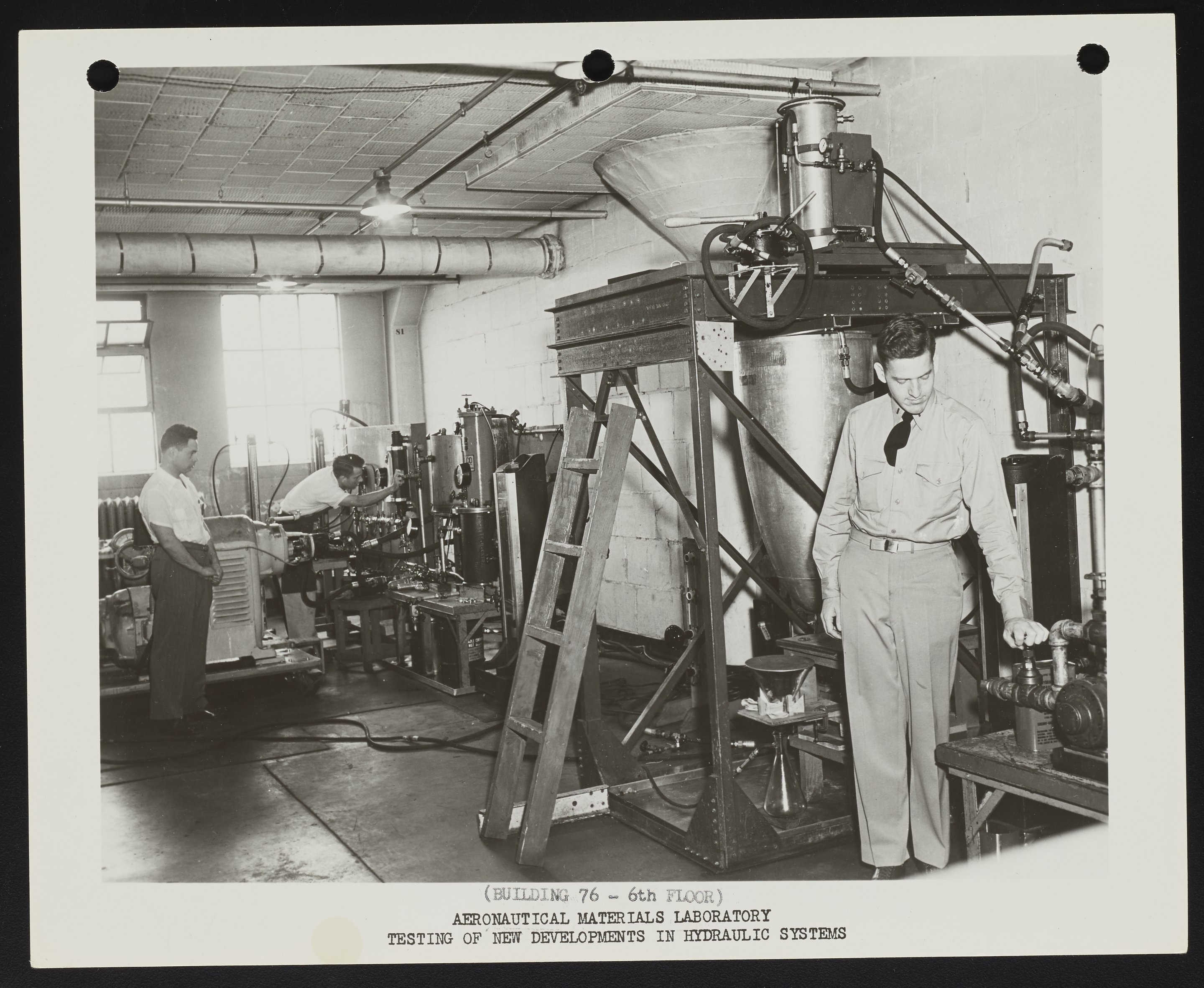 Naval Air Material Center, and United States. Navy. “Testing of New Developments in Hydraulic Systems,” 1958. Photographs from the Papers of J. Hartley Bowen, Box 1. Science History Institute. Philadelphia. https://digital.sciencehistory.org/works/p2676v56g.
