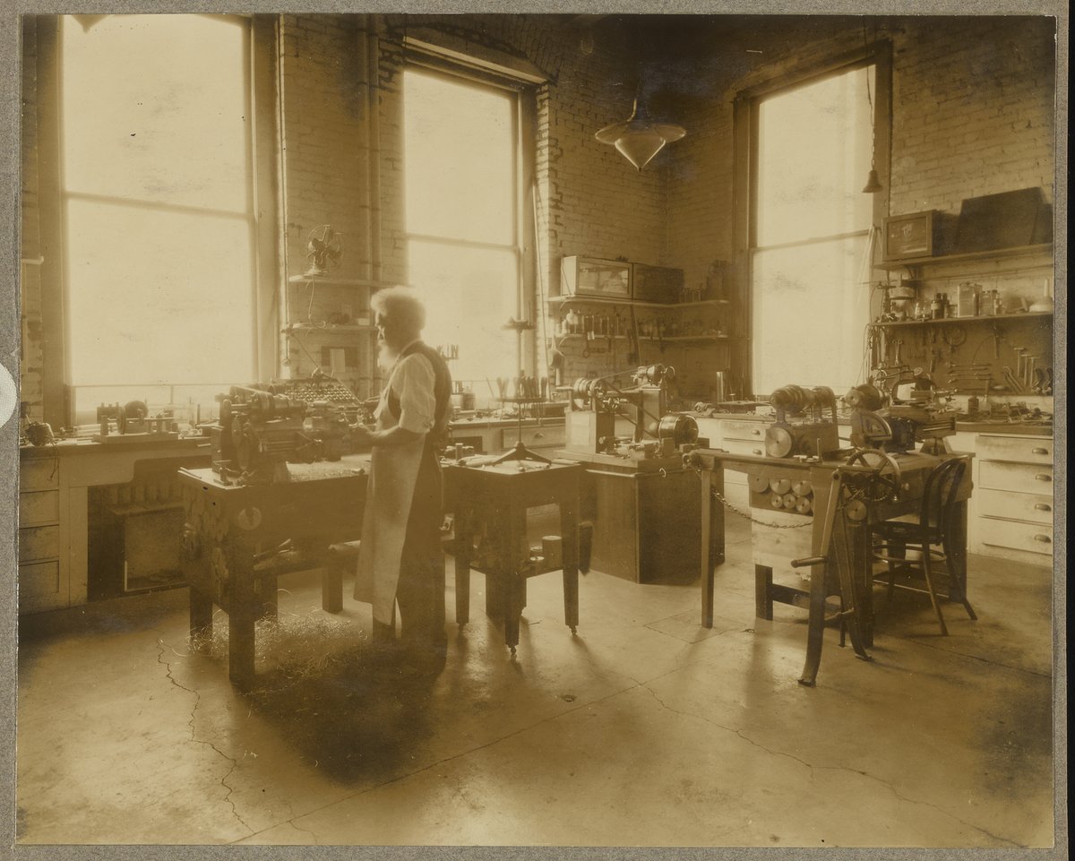 “J.E. Reuter at Work in Instrument Shop at Fixed Nitrogen Research Laboratory,” April 1926. Travis P. Hignett Collection of Fixed Nitrogen Research Laboratory Photographs, Box 1. Science History Institute. Philadelphia. https://digital.sciencehistory.org/works/p8418n25z.
