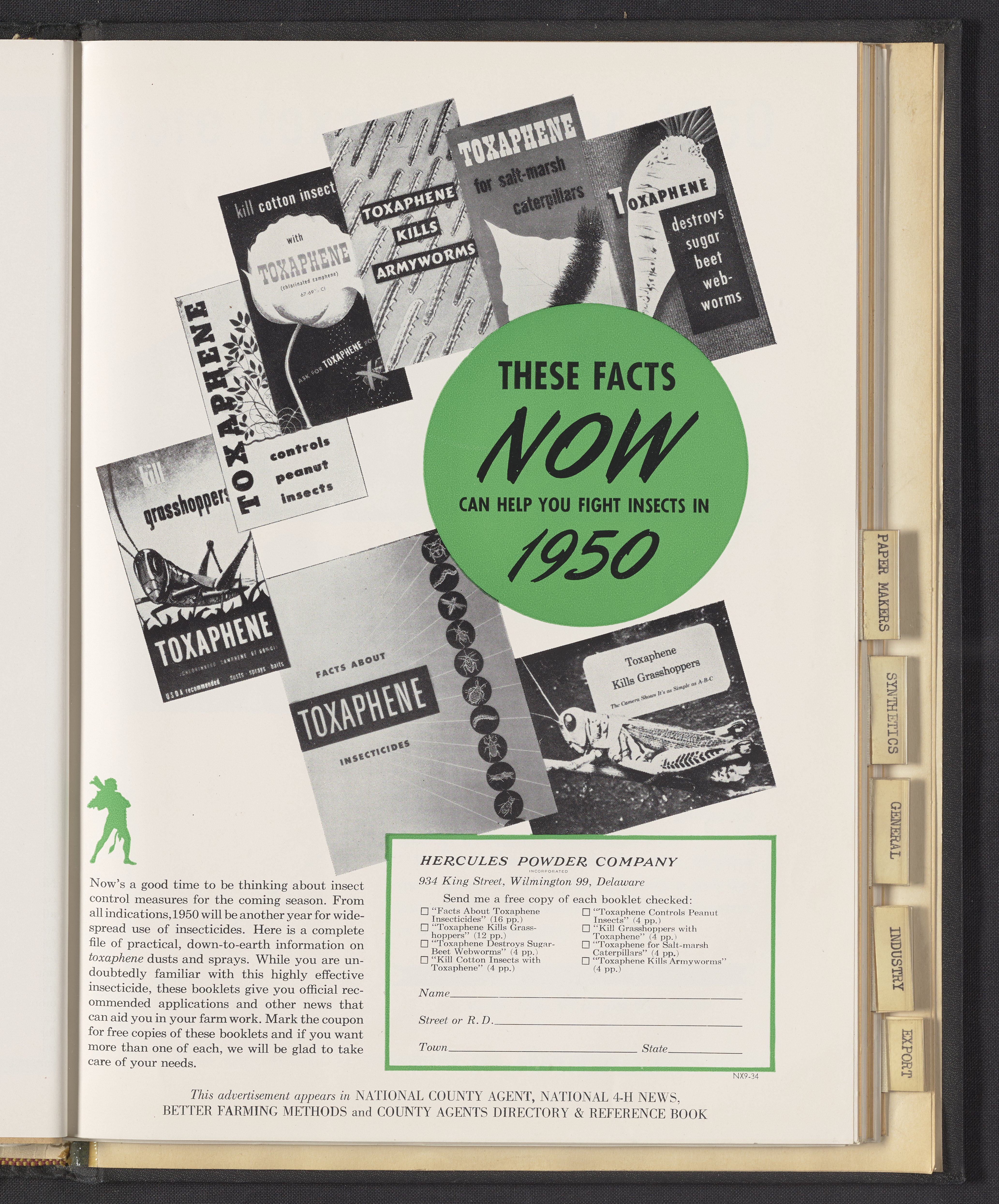 Hercules Incorporated. “These Facts Now Can Help You Fight Insects in 1950.” 1949 Hercules Advertisements, 1949. Records of Hercules Incorporated, Volume 1949. Science History Institute. Philadelphia. https://digital.sciencehistory.org/works/p8418p05p.