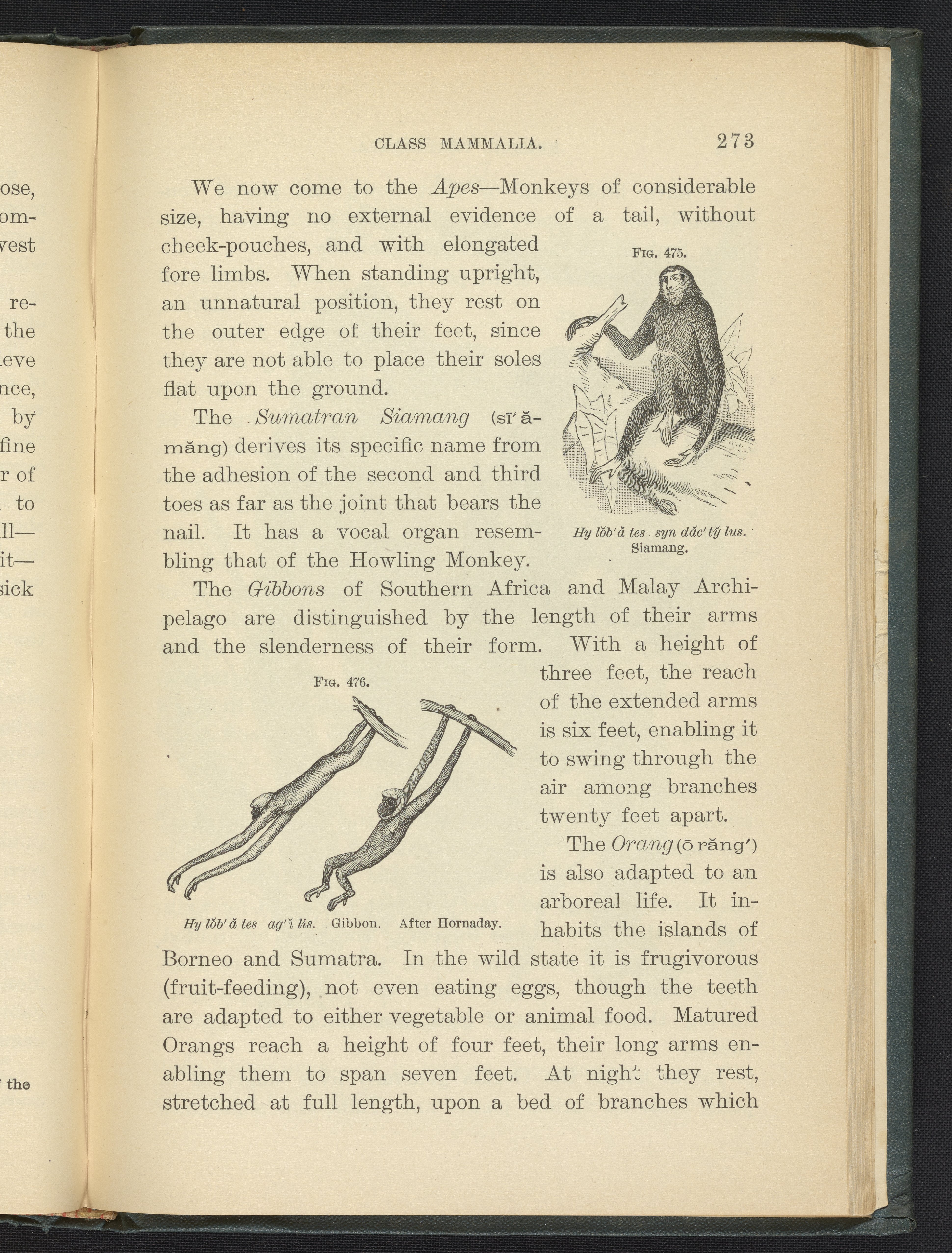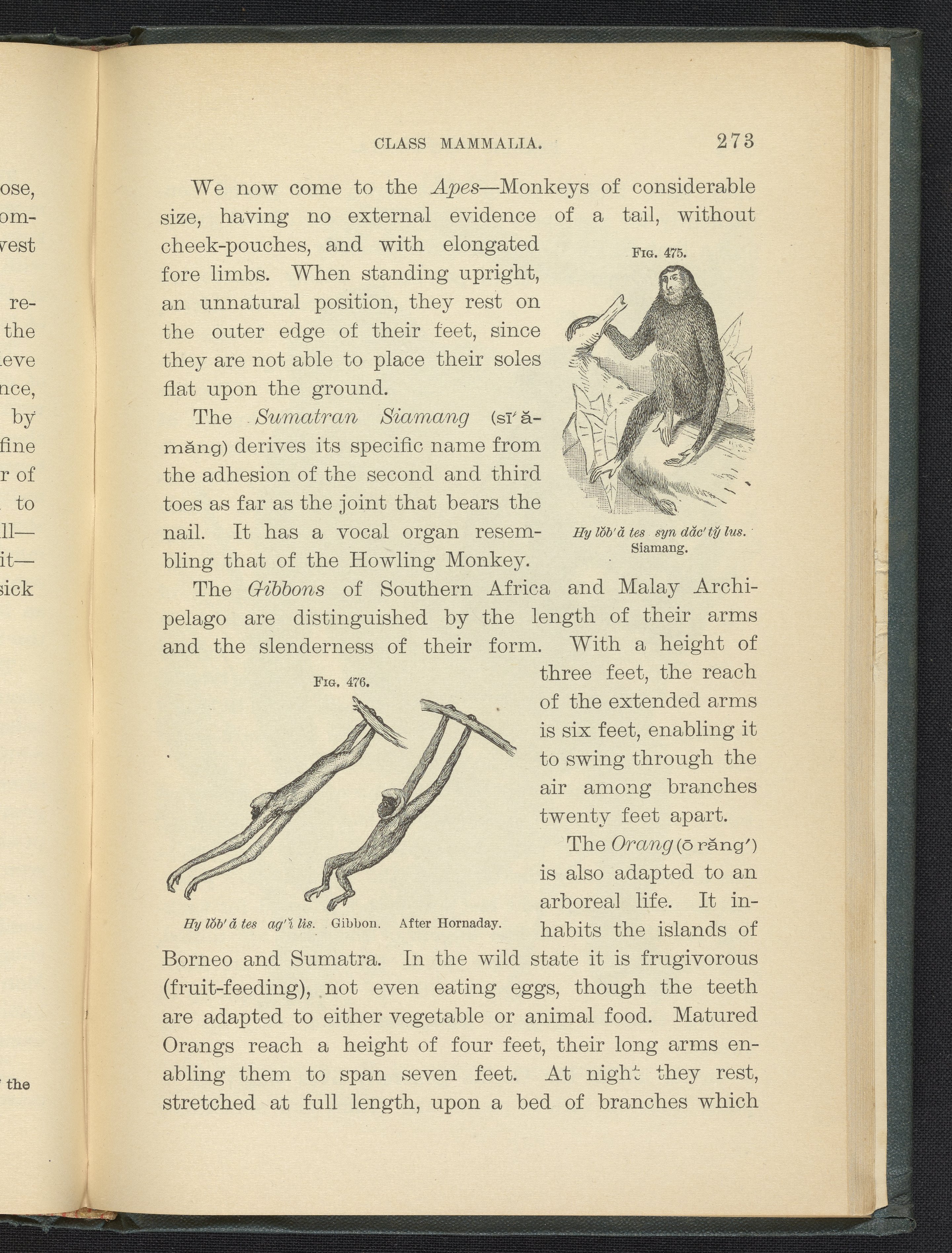 Steele, Joel Dorman, and Jenks, J. W. P. (John Whipple Potter). “Figure 475. Siamang. Figure 476. Gibbon. After Hornaday.” Popular Zoology. New York, New York: Chautauqua Press, 1887. https://digital.sciencehistory.org/works/p8fe2b9.