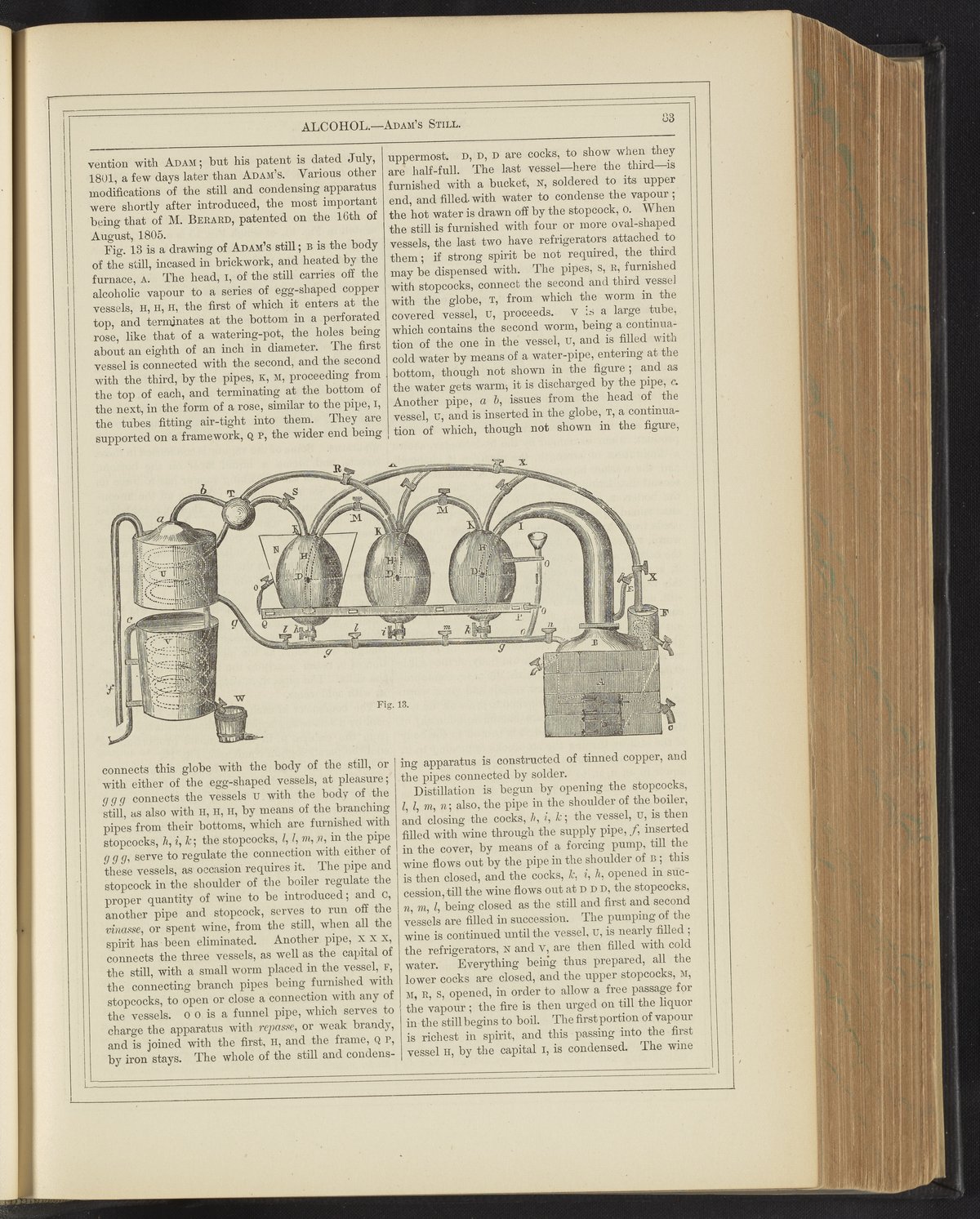 “Adam's Still for the Distillation of Alcohol.” In Encyclopædia of Chemistry, Theoretical, Practical, and Analytical, as Applied to the Arts and Manufacturers, Vol. I and II. Philadelphia, Pennsylvania: J.B. Lippincott & Co., 1877. https://digital.sciencehistory.org/works/pc289j08t.