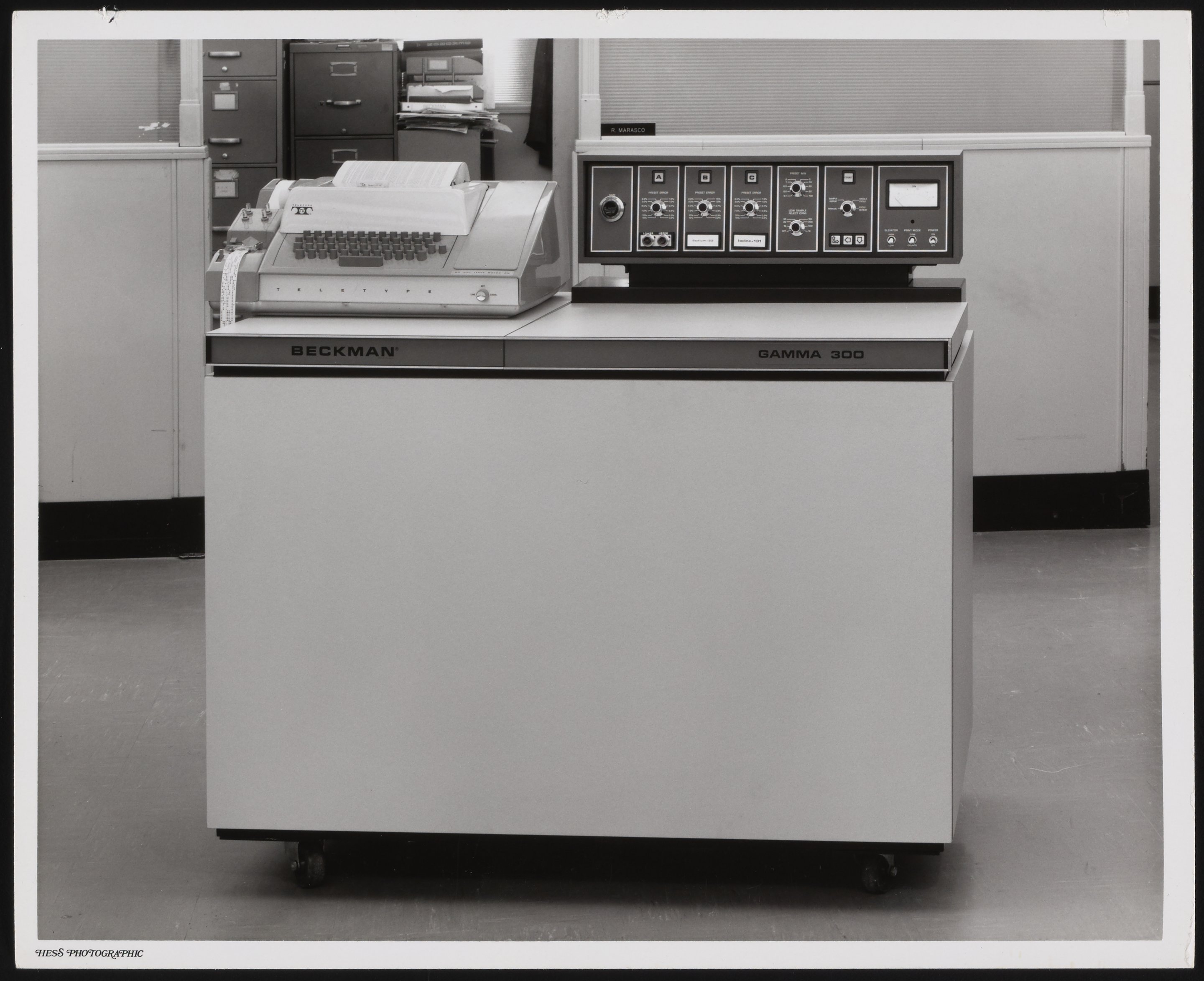 “Beckman Gamma 300 Counting System,” circa 1975. Beckman Historical Collection, Box 83. Science History Institute. Philadelphia. https://digital.sciencehistory.org/works/pc289j157.