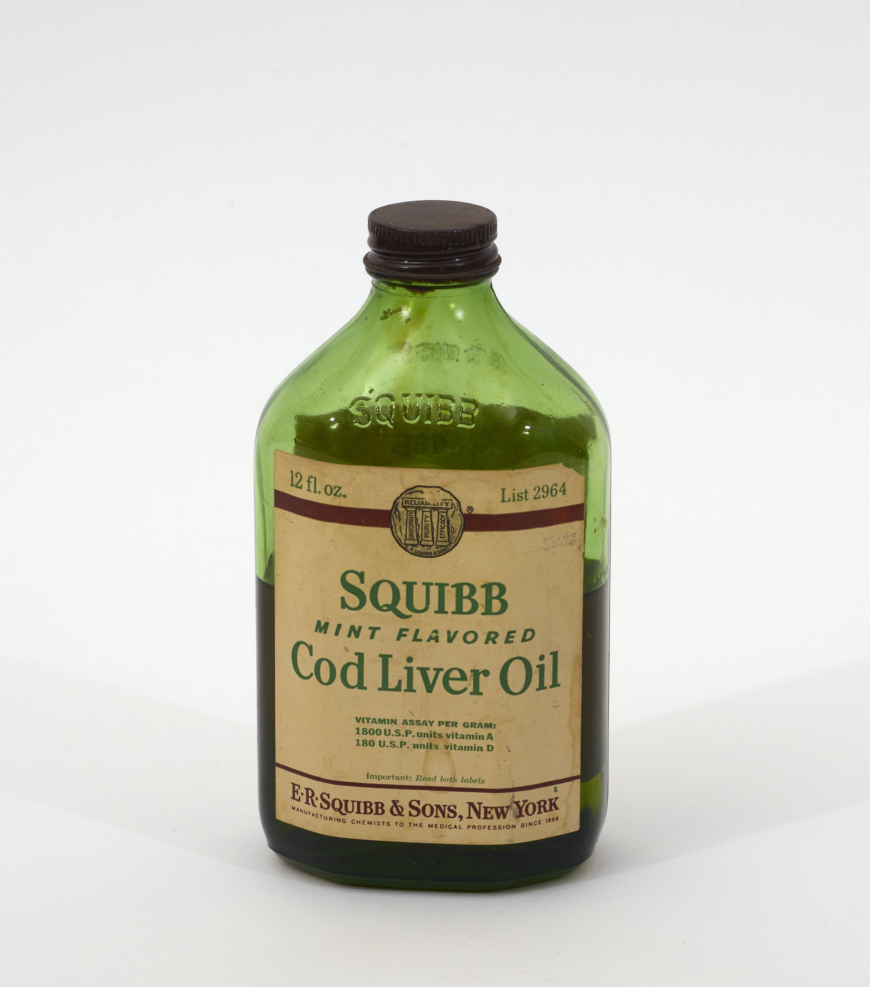 Science History Institute. Mint Flavored Cod Liver Oil. Photograph, 2024. Science History Institute. Philadelphia. https://digital.sciencehistory.org/works/pfewtn1.