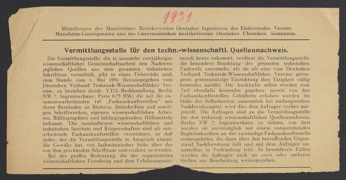 Vermittlungsstelle für den tech.-wissenschaftliche. Quellennachweis