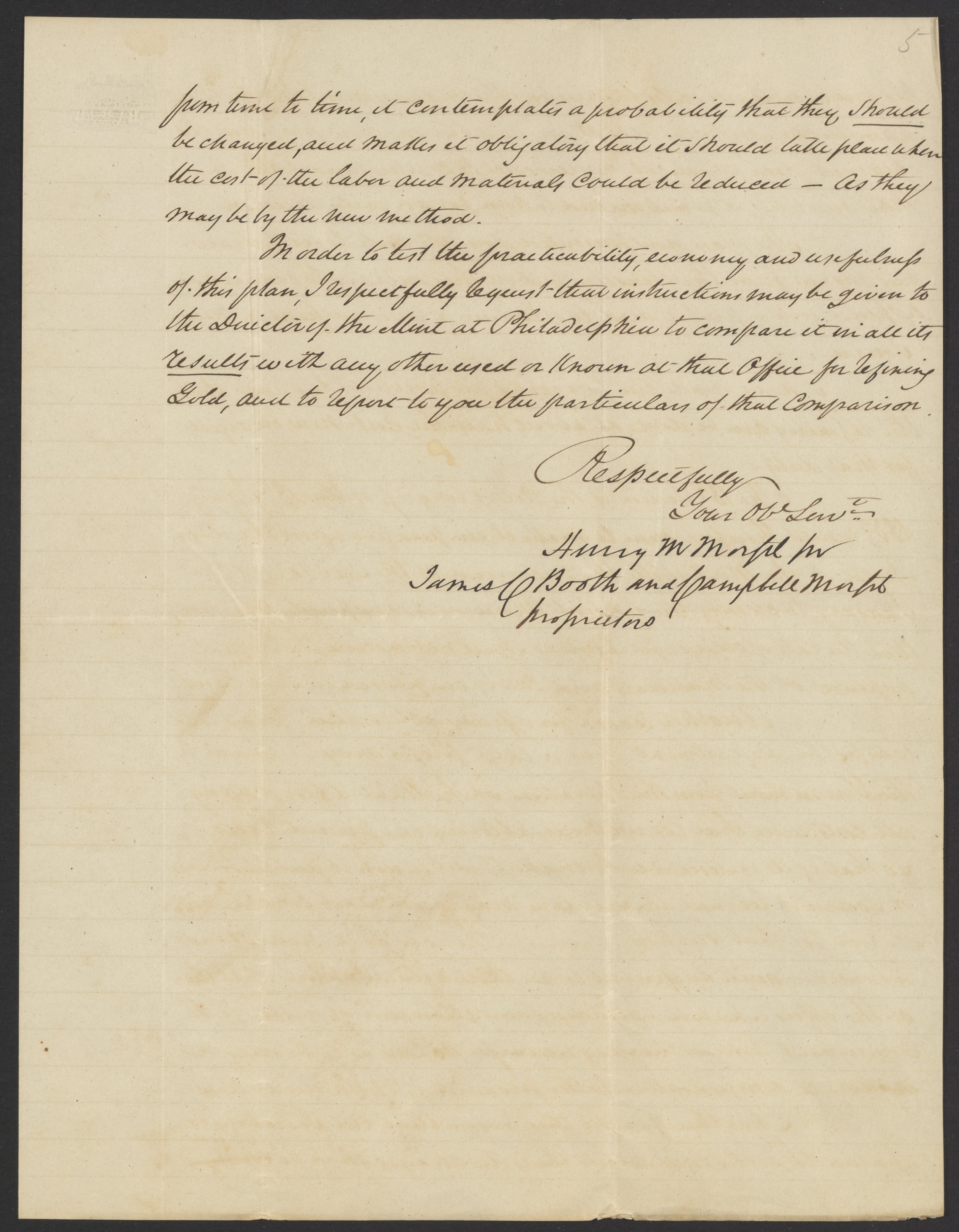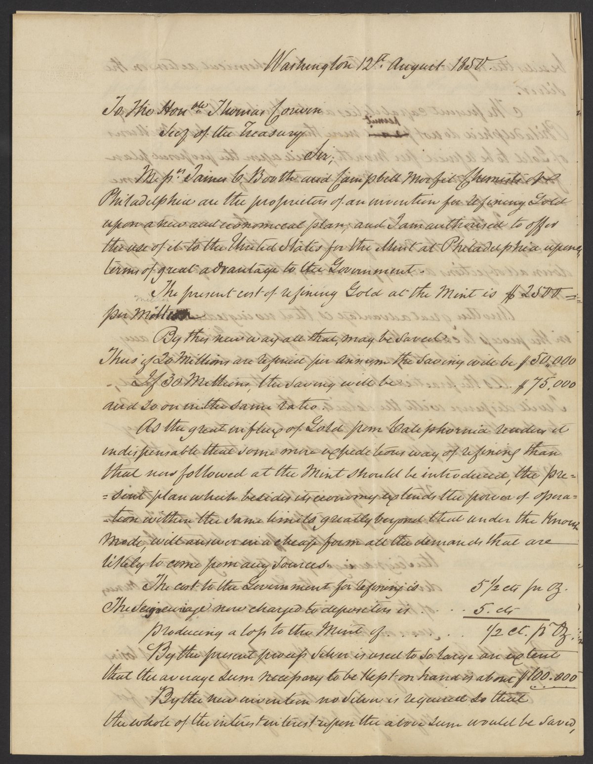 Letter from Henry M. Morfit to James Curtis Booth, August 12, 1850