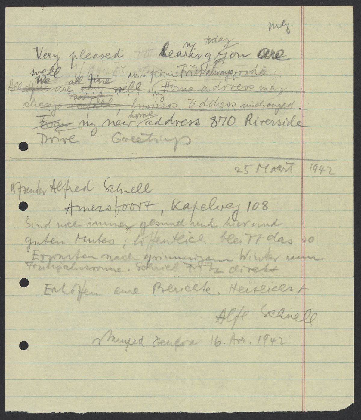 Correspondence between Max Bredig and Alfred Schnell, Spring 1942