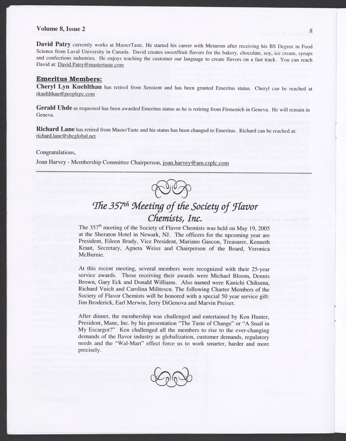 Society News, Volume 8, Issue 2
