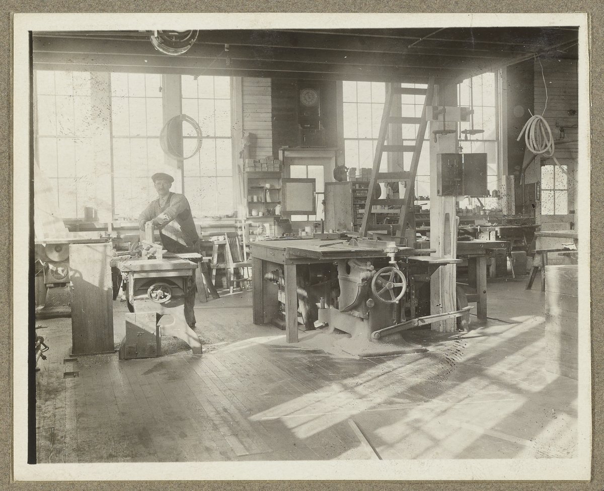 F.F. Robey at work in carpenter shop at Fixed Nitrogen Research Laboratory