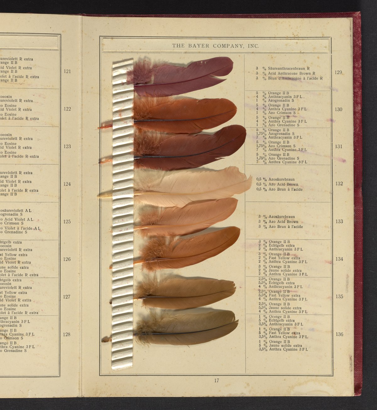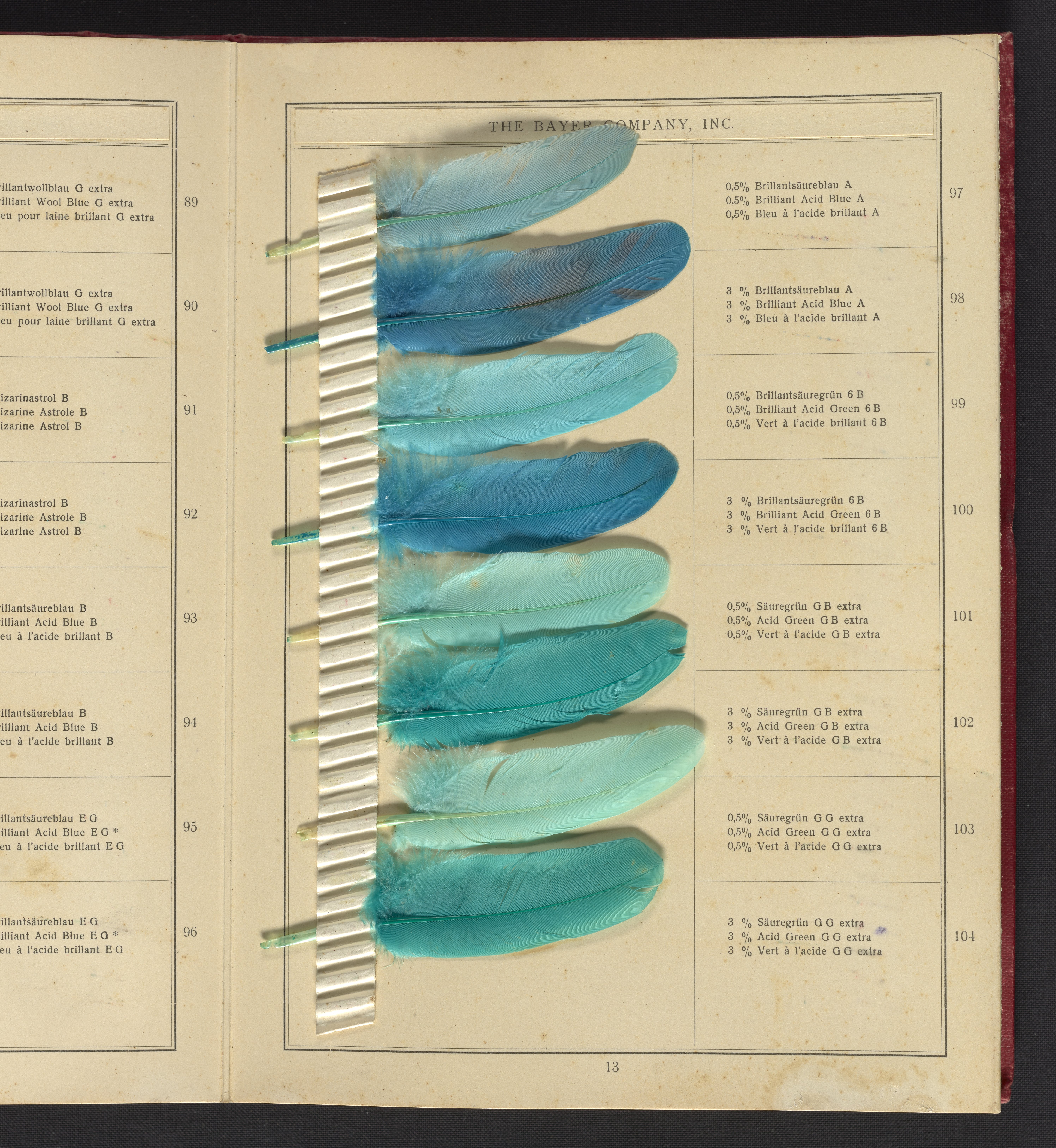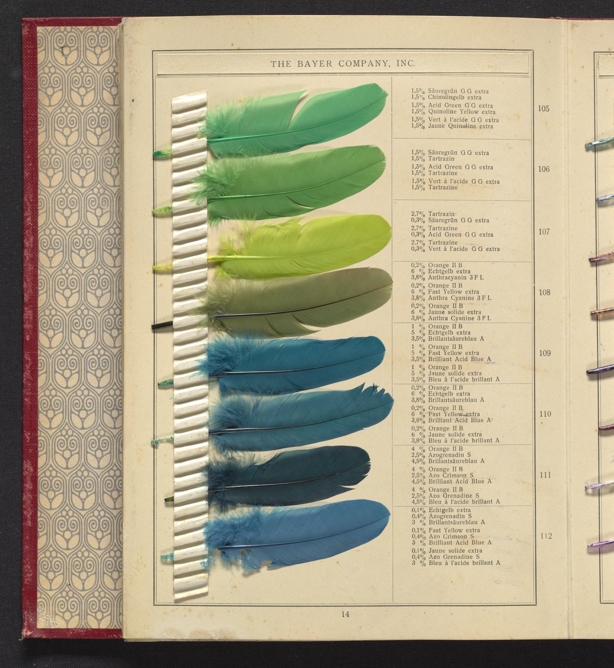 Small JPG1200 x 1624px — 530 KBLarge JPG2880 x 3899px — 2.8 MBFull-sized JPG4809 x 6510px — 6.8 MBOriginal fileTIFF — 4809 x 6510px — 89.6 MBSample book with dyeing instructions and an 18-section foldout containing 143 dyed feathers.