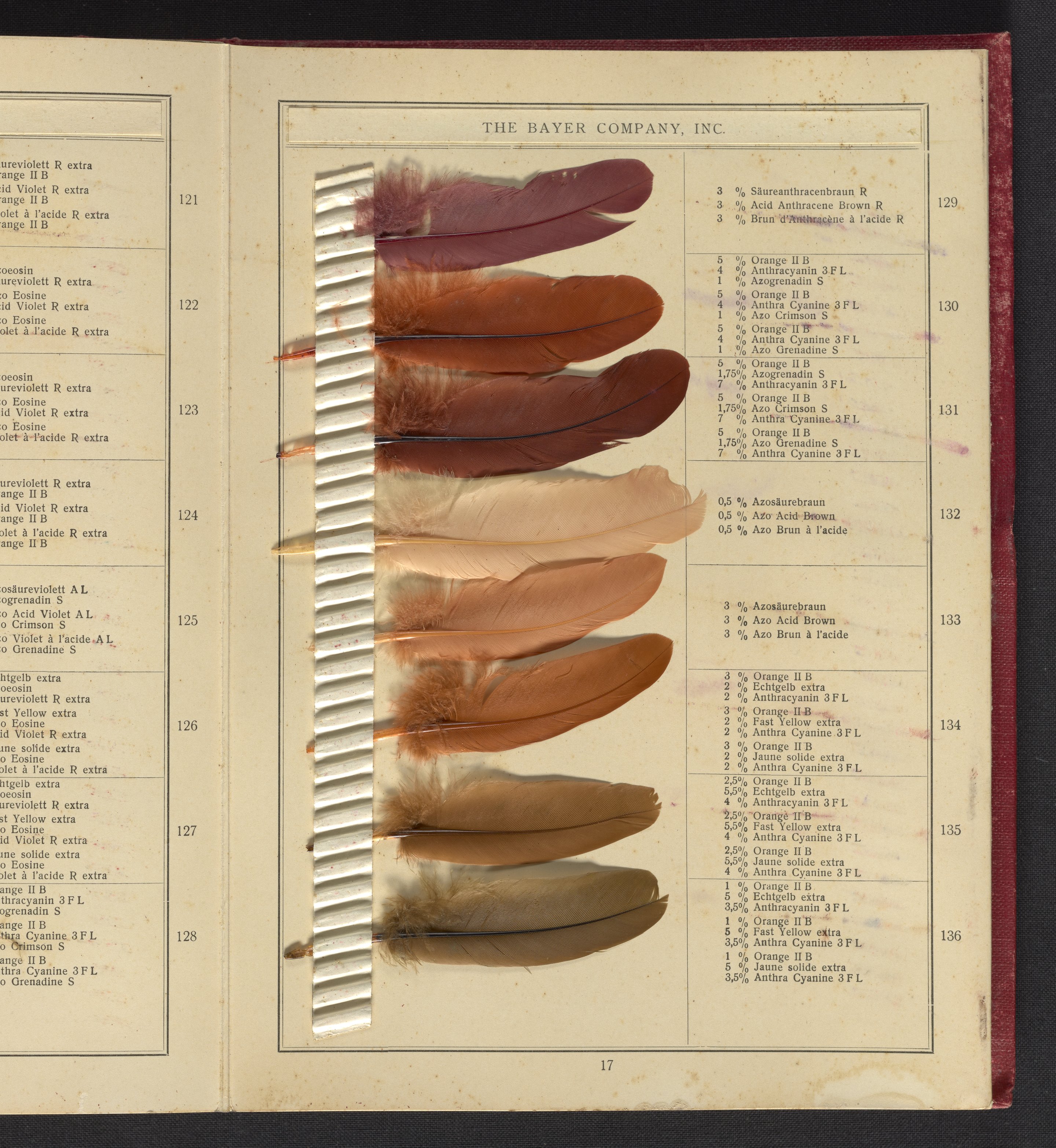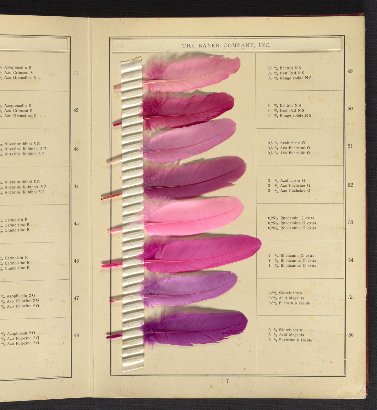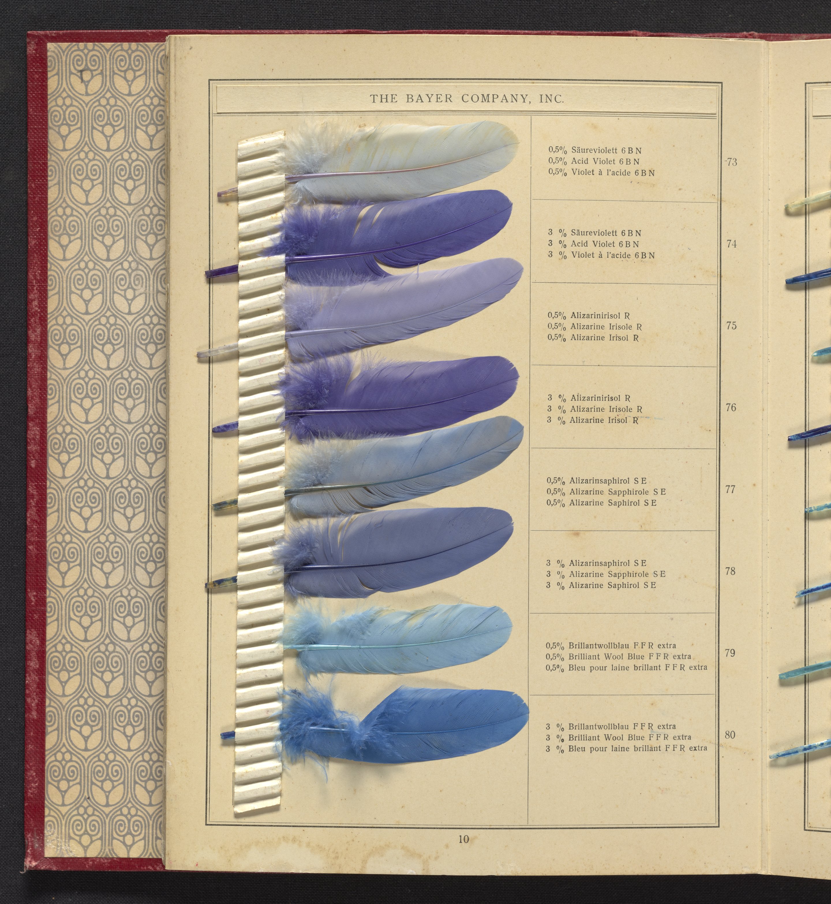 Small JPG1200 x 1624px — 530 KBLarge JPG2880 x 3899px — 2.8 MBFull-sized JPG4809 x 6510px — 6.8 MBOriginal fileTIFF — 4809 x 6510px — 89.6 MBSample book with dyeing instructions and an 18-section foldout containing 143 dyed feathers.