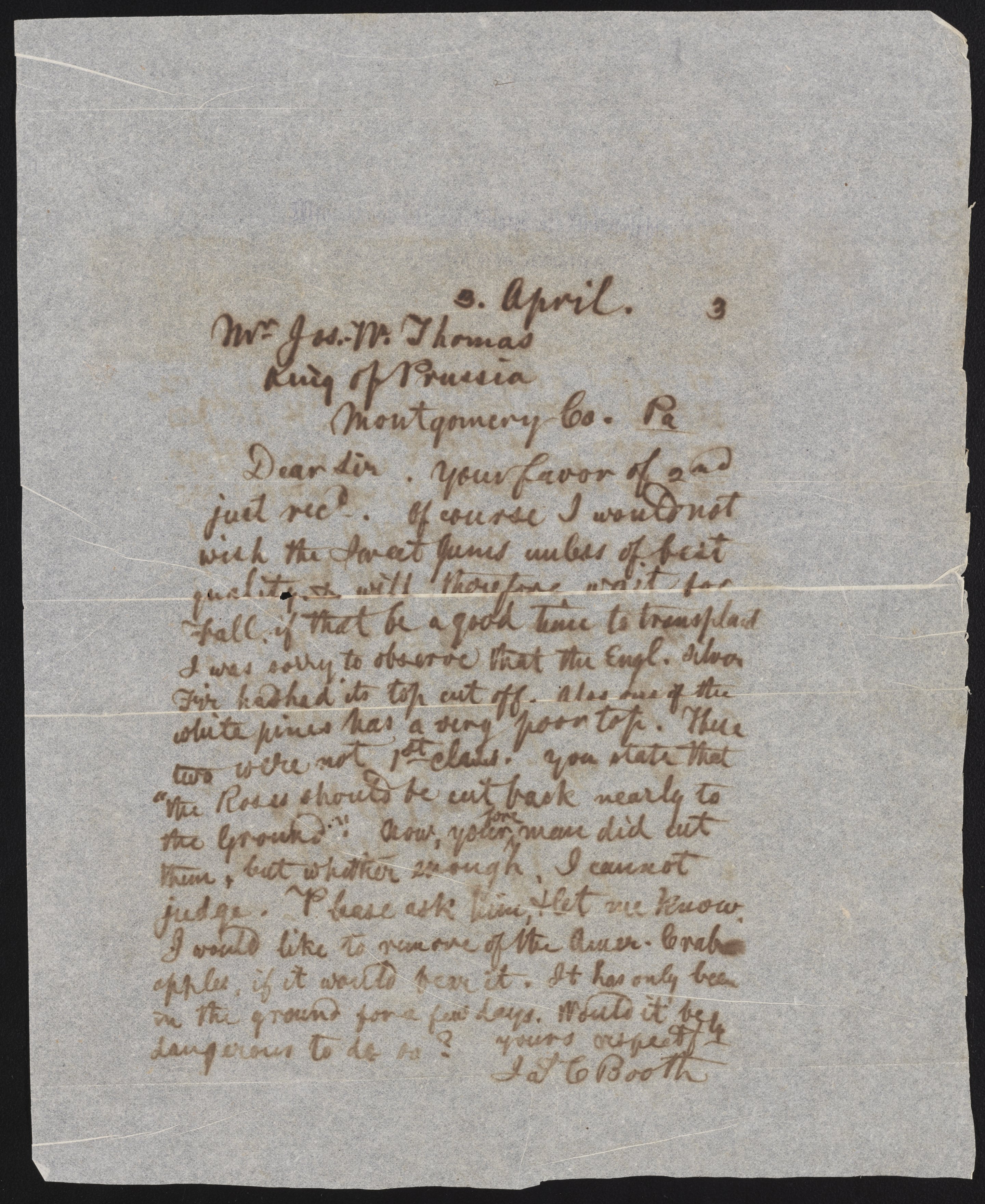 Booth, James Curtis. “Letter from James Curtis Booth to J.W. Thomas, April 3, 1883,” April 3, 1883. Papers of James Curtis Booth, Box 2, Folder 10. Science History Institute. Philadelphia. https://digital.sciencehistory.org/works/pkbqbqz.
