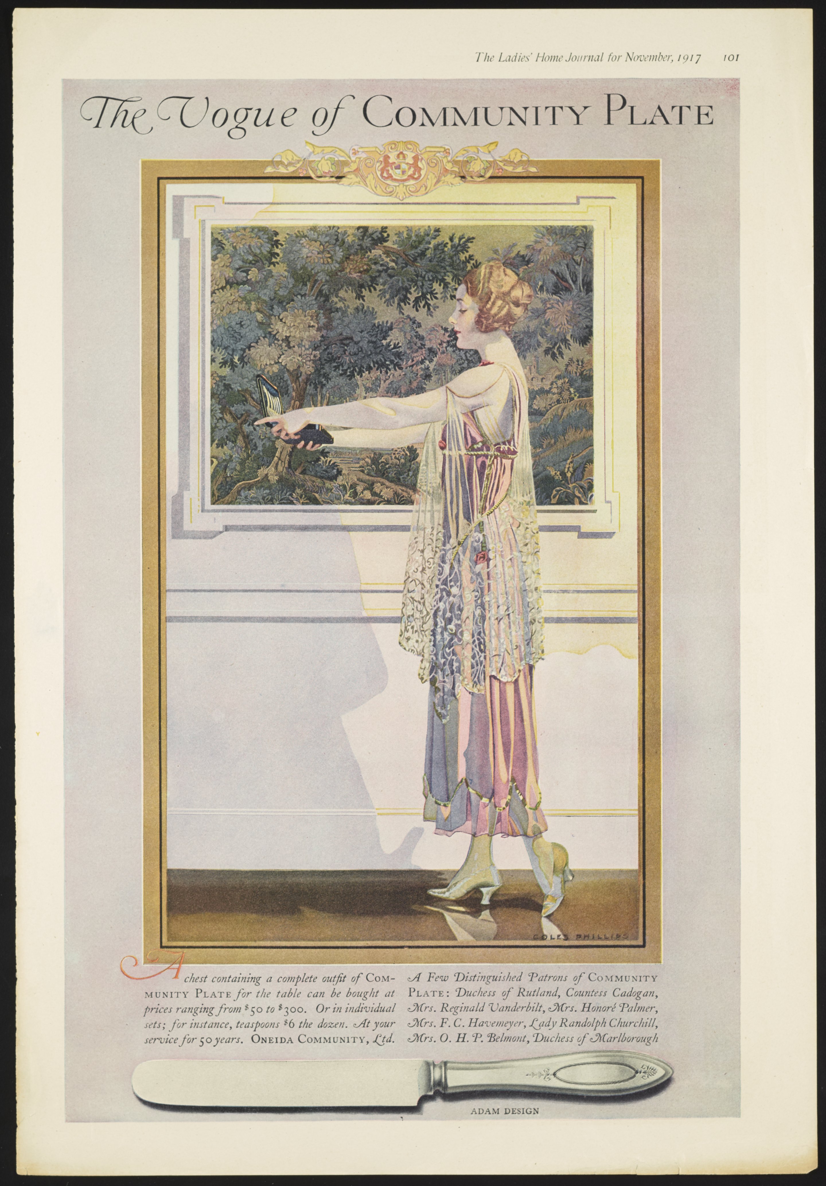 Phillips, Coles. “The Vogue of Community Plate,” November 1917. Science History Institute. Philadelphia. https://digital.sciencehistory.org/works/pn89d691t.