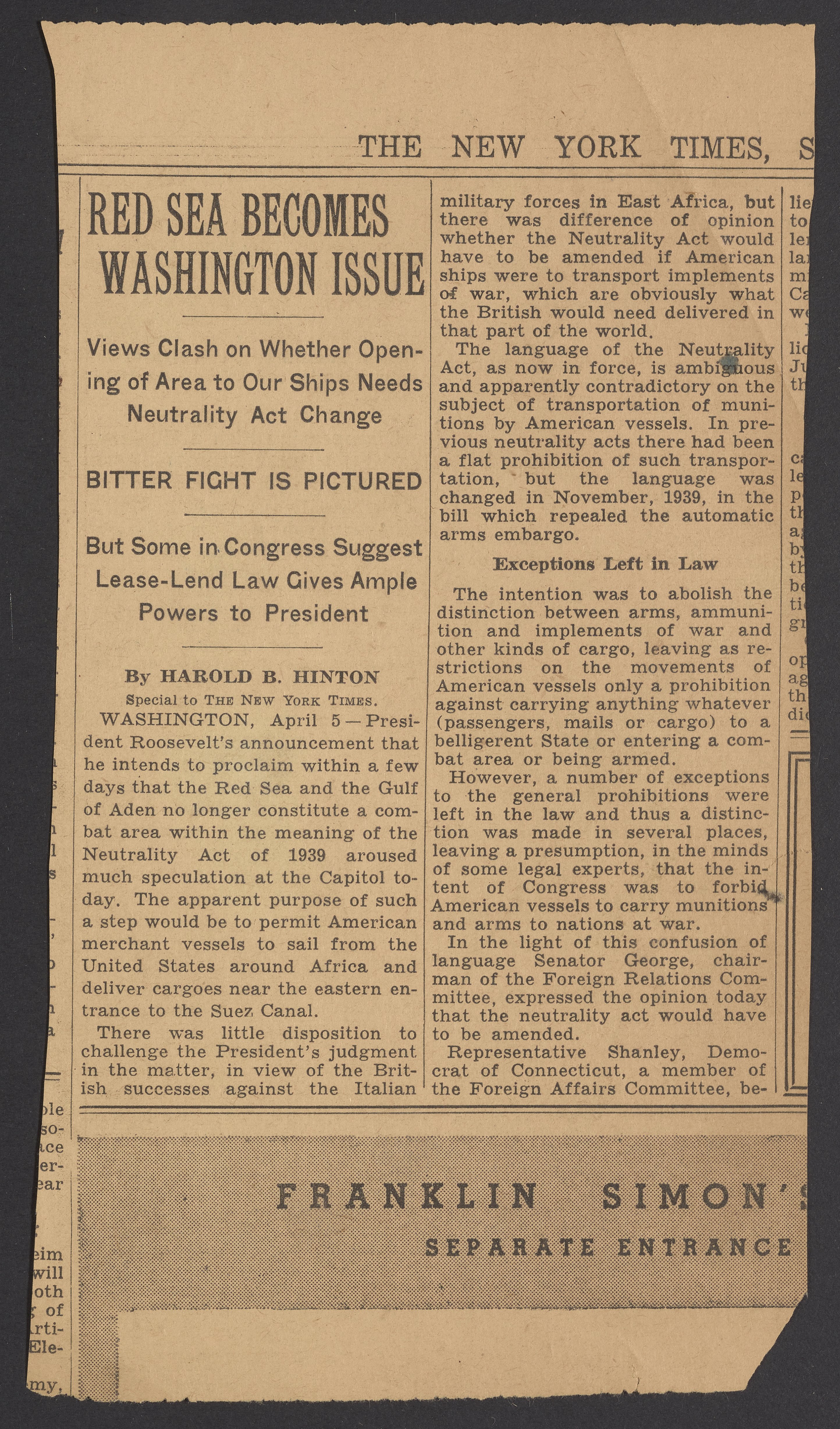 “Refugee 'Bottleneck’ Narrows in Lisbon.” New York times, April 6, 1941. Papers of Georg and Max Bredig, Box 10, Folder 24. Science History Institute. Philadelphia. https://digital.sciencehistory.org/works/ppnnley.