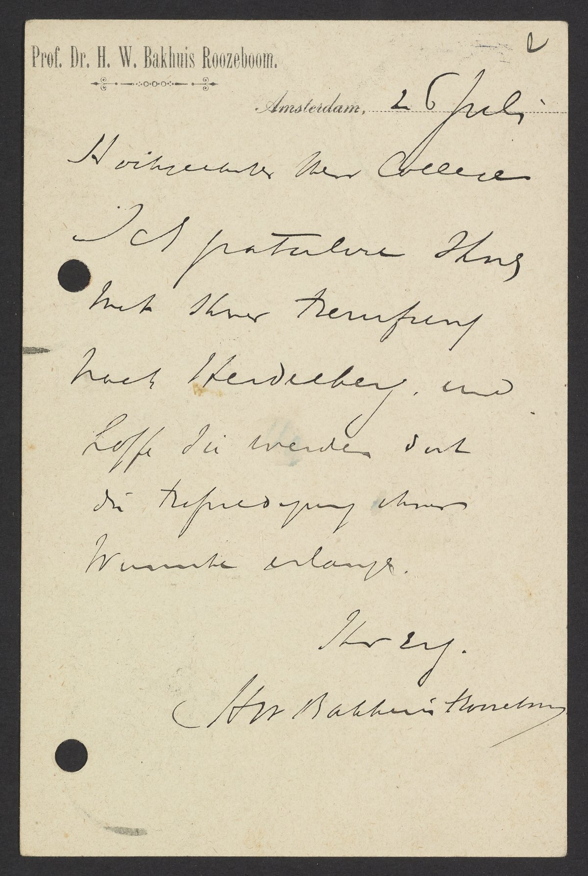 Postcard from Hendrik Willem Bakhuis Roozeboom to Georg Bredig, July 1901