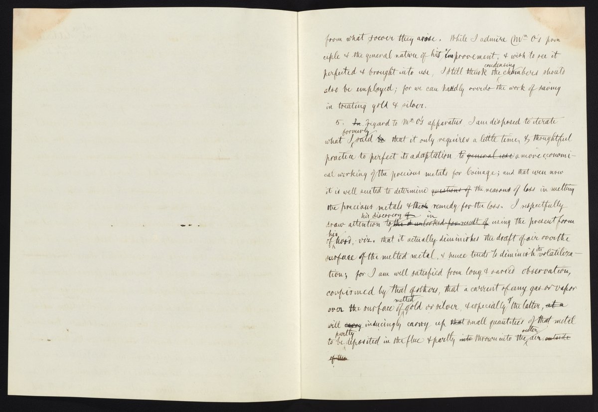 Small JPG1200 x 1522px — 264 KBLarge JPG2880 x 3653px — 1.0 MBFull-sized JPG5132 x 6509px — 2.6 MBOriginal fileTIFF — 5132 x 6509px — 95.6 MBRough draft of a letter dealing with the results of A. E. Outerbridge’s experiments on the volatilization of standard silver. The letter is unsigned but is written in James Curtis Booth's (1810-1888) hand.