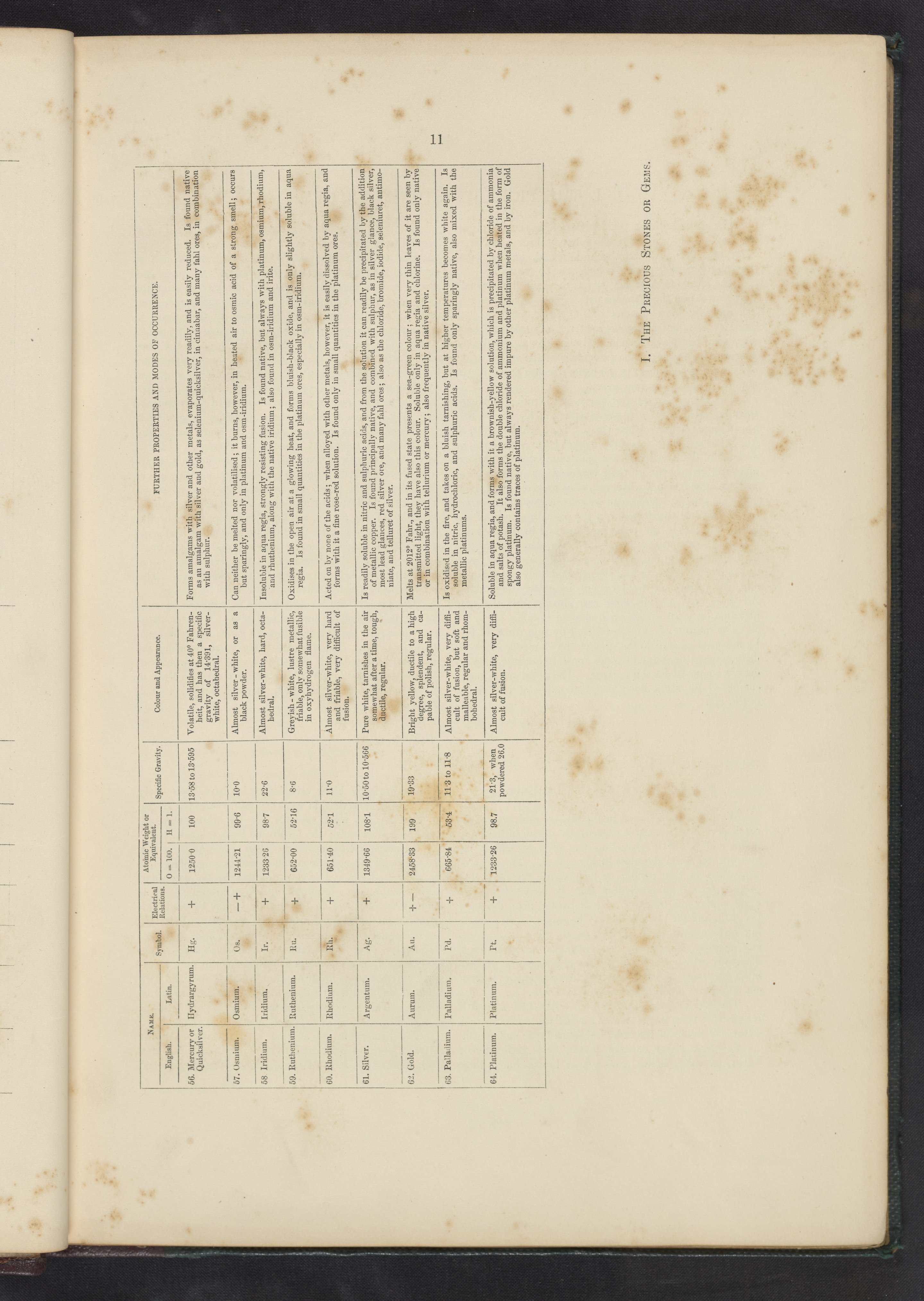 Small JPG1200 x 1673px — 459 KBLarge JPG2880 x 4015px — 2.5 MBFull-sized JPG6448 x 8990px — 9.9 MBOriginal fileTIFF — 6448 x 8990px — 166 MBJohann Gottlob von Kurr (1798-1870) published Das Mineralreich in Bildern as a professor of mineralogy and botany at the Stuttgart Polytechnic Institute in 1858. Digitized in entirety, this first edition English translation of the German Das Mineralreich in Bildern consists of two sections. The first is an introduction including topics such as the formation of crystals and chemical reactions of crystals. Of particular note is a five-page table of the chemical elements (pp. 7-11), consisting of two parts: I. Metalloids, nonmetallic elements; and II. Metals. The second section is devoted to the description of various mineral groups including precious stones, hornblende and augitic minerals, felspathic minerals, micaceous minerals, zeolitic minerals, calcareous minerals, and various salts and compounds. The final pages of the book contain twenty-four lithograph plates depicting crystalline structures and mineral forms. The plates are hand-colored, using metallic finishes to create a lustrous effect.