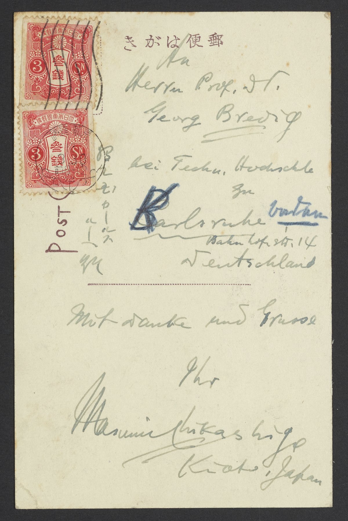 Postcard from Masumi Chikashige to Georg Bredig
