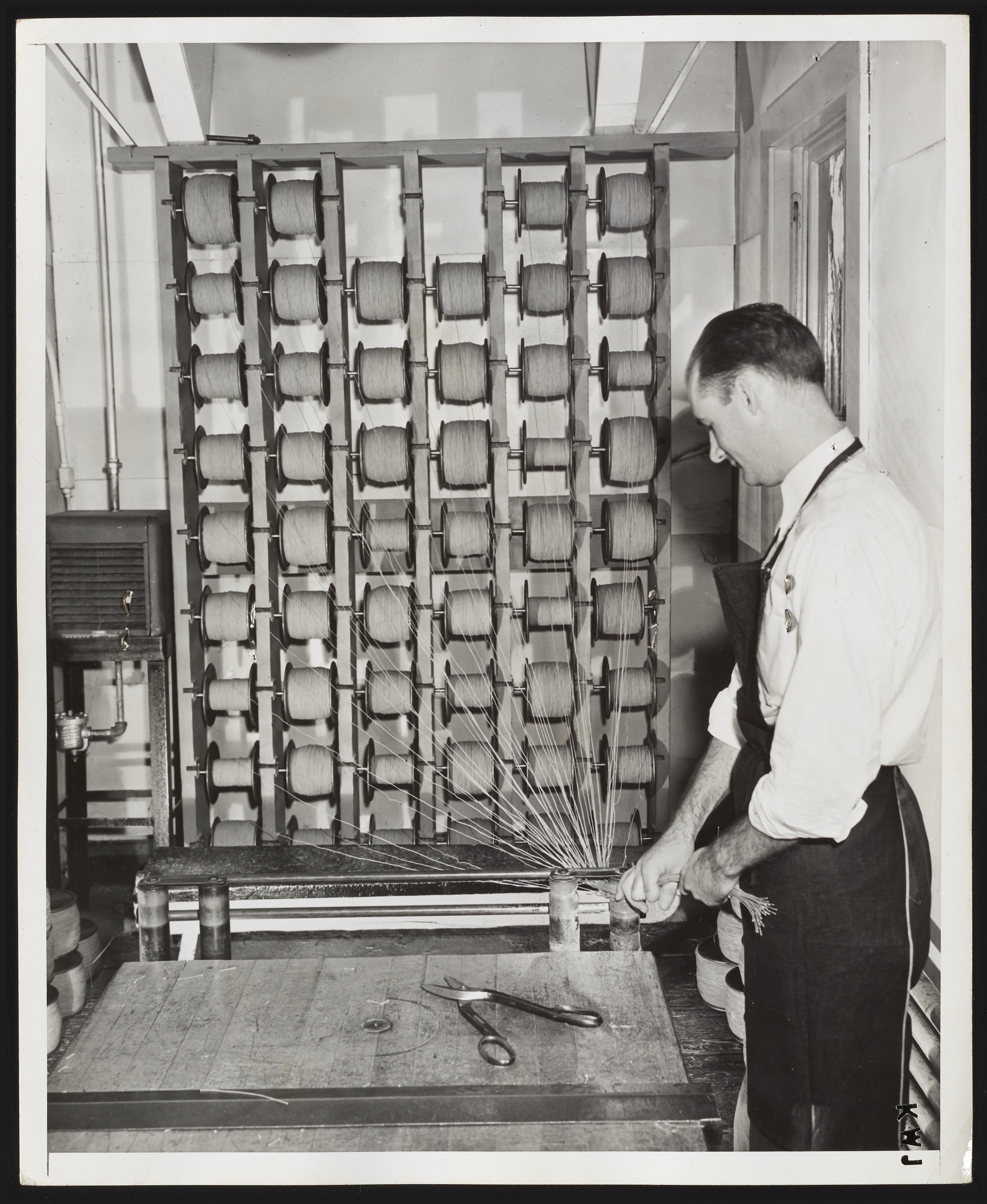 Hercules Incorporated. “Employee Cutting Wires at Hercules Port Ewen Plant,” March 1945. Photographs from the Records & Ephemera of Hercules Incorporated, Box 2, Folder 36. Science History Institute. Philadelphia. https://digital.sciencehistory.org/works/pv63g082b.