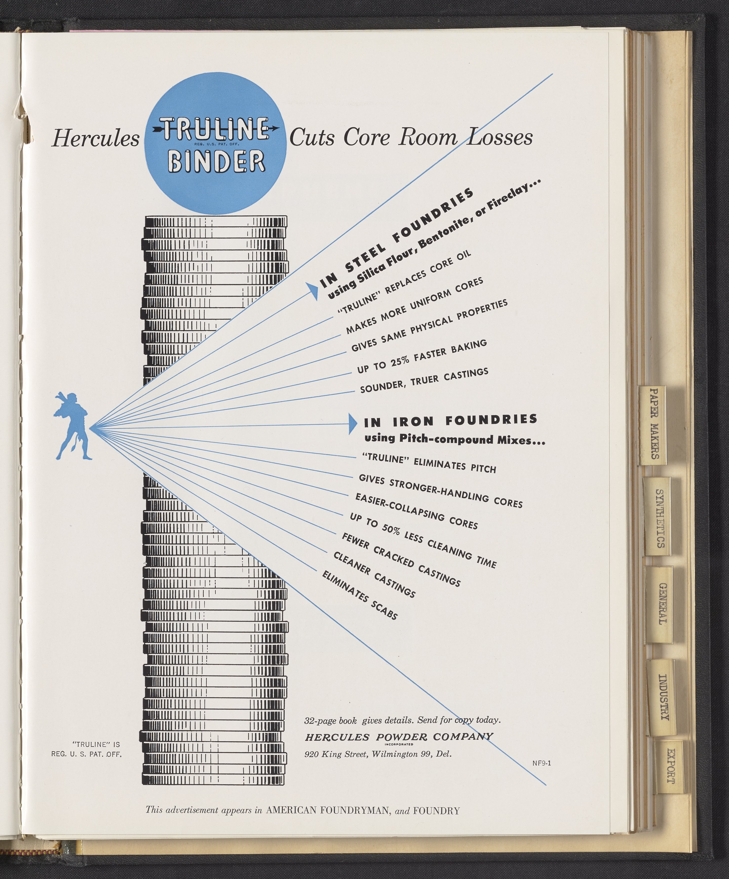 Hercules Incorporated. “Hercules Truline Binder Cuts Core Room Losses.” 1949 Hercules Advertisements, 1949. Records of Hercules Incorporated, Volume 1949. Science History Institute. Philadelphia. https://digital.sciencehistory.org/works/pv63g1088.