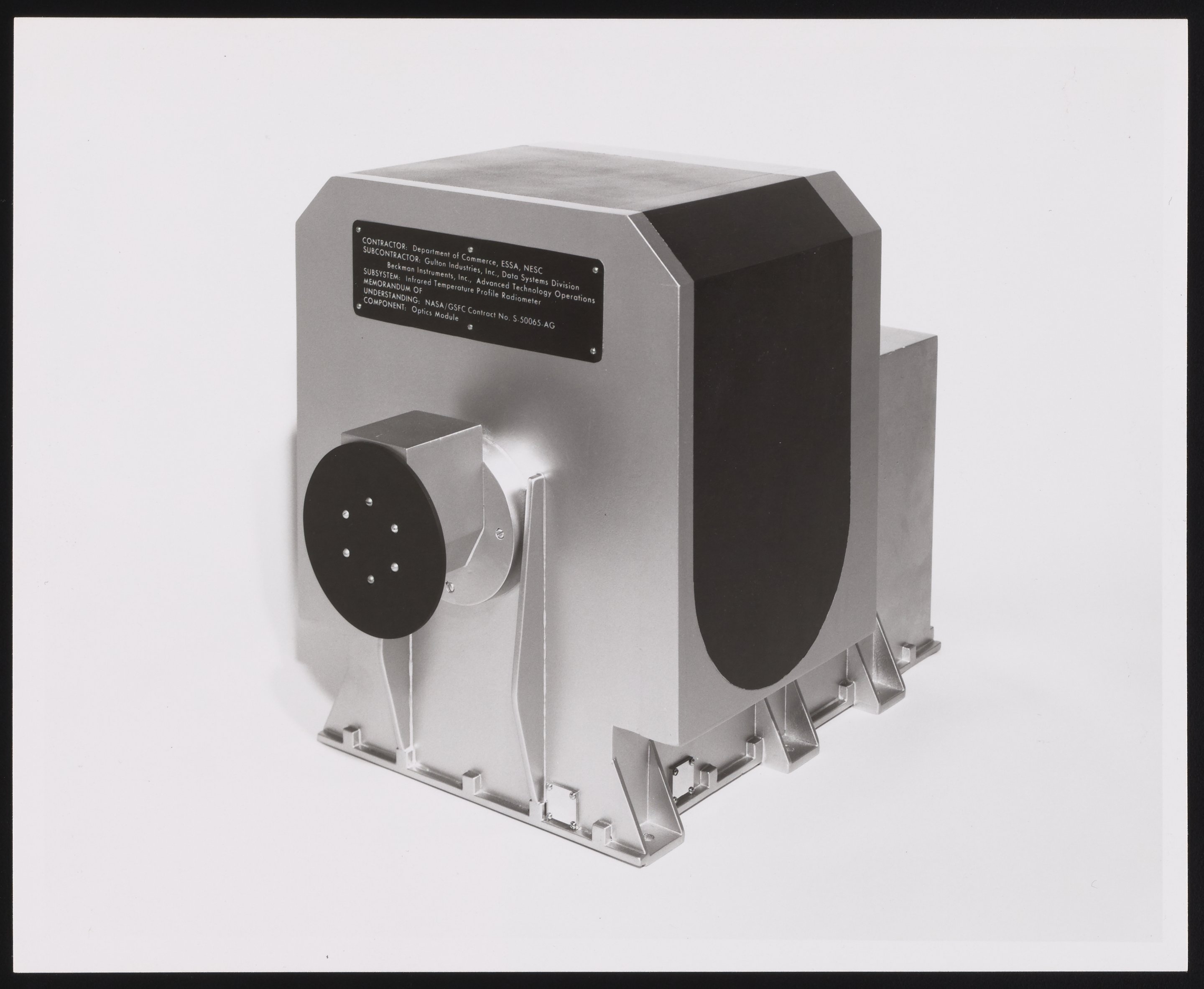Small JPG1200 x 978px — 175 KBLarge JPG2880 x 2348px — 765 KBFull-sized JPG3127 x 2549px — 868 KBOriginal fileTIFF — 3127 x 2549px — 22.9 MBBeckman's Advanced Technology Operations subcontracted to develop an optical system for the Nimbus 5 weather satellite. The instrument measured infrared radiation emitted from Earth in seven spectral intervals, and used that data to provide meteorological data and enhance weather forecasts.