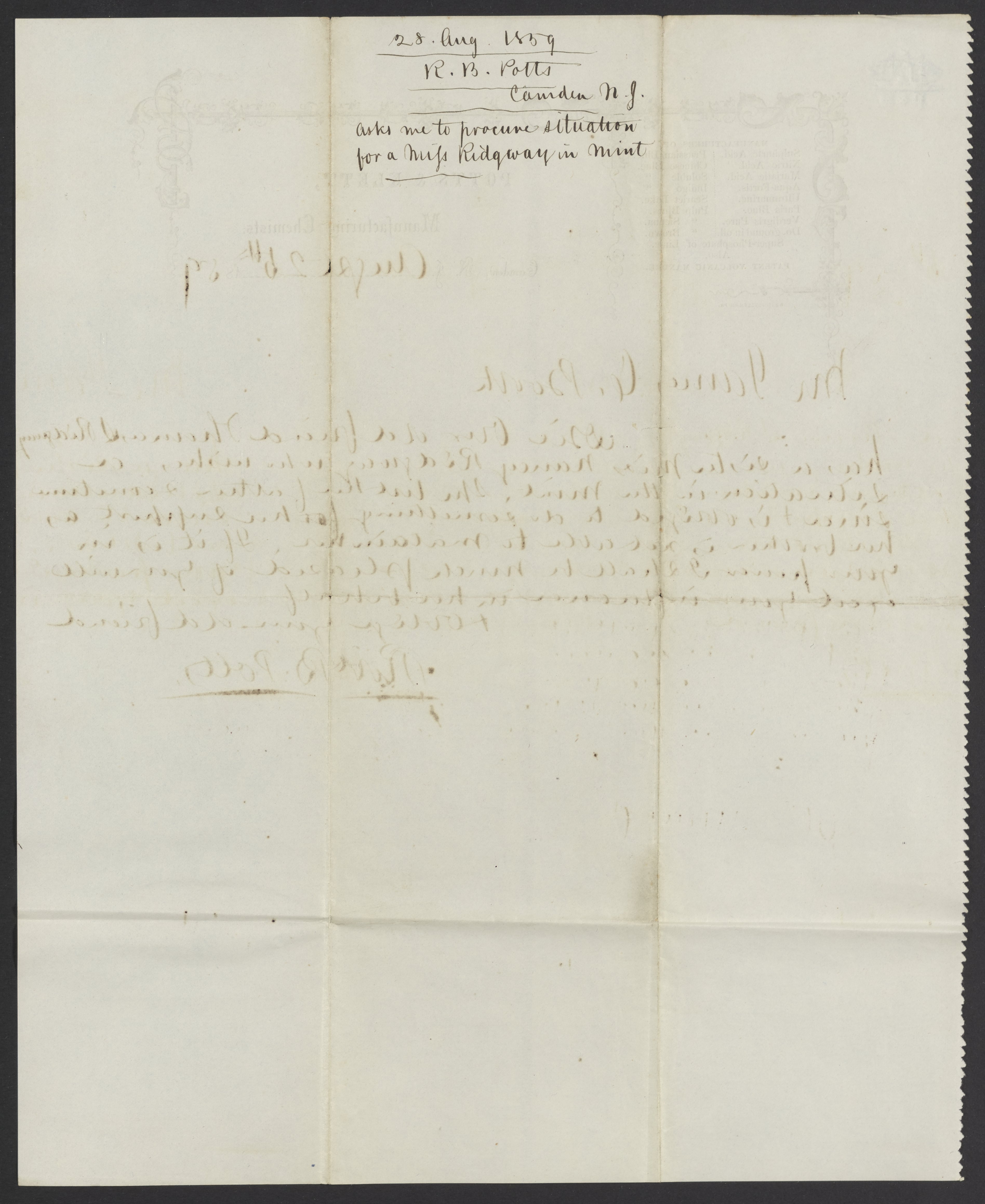 Letter from Robert B. Potts to James Curtis Booth, August 25, 1859