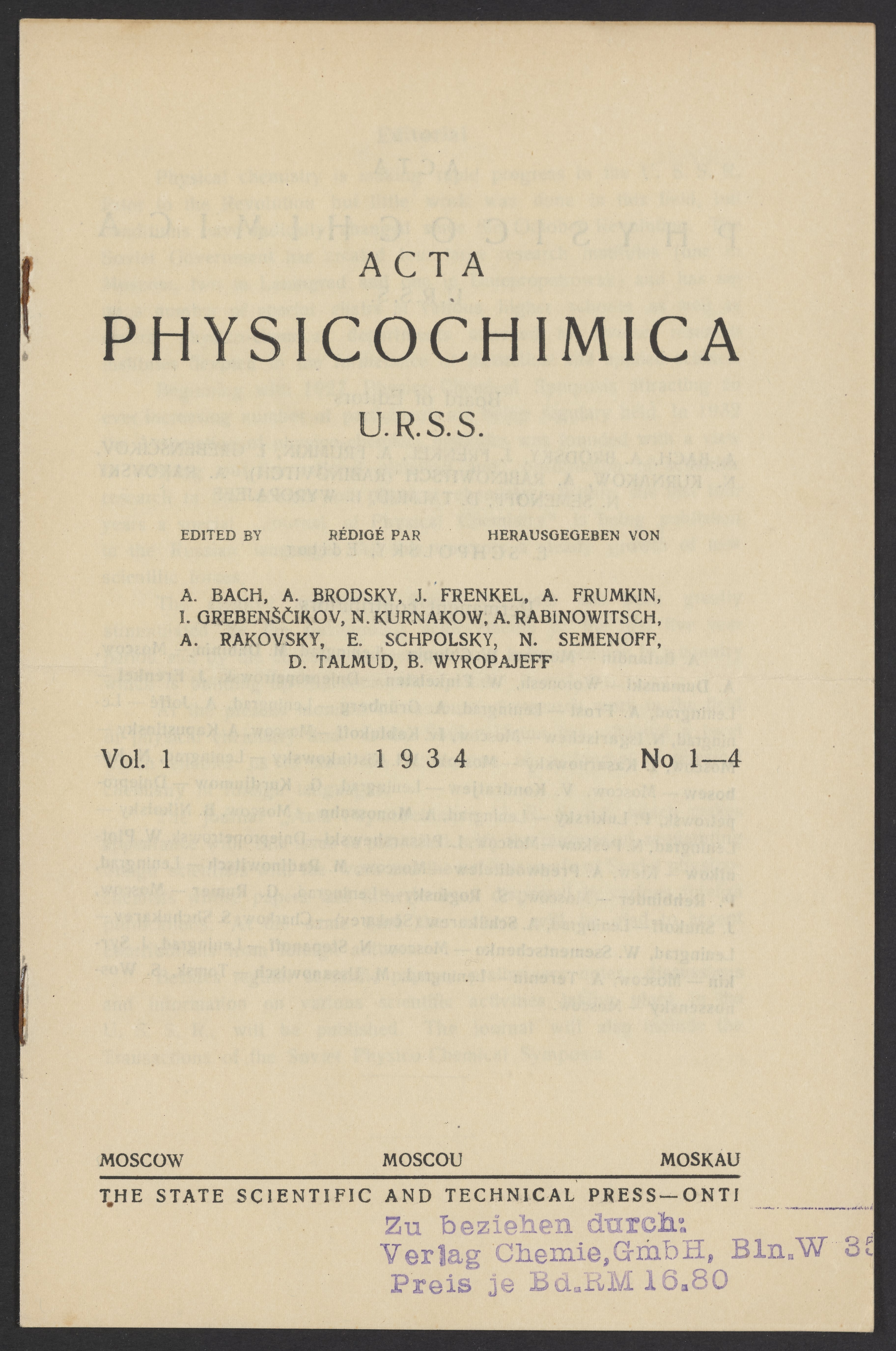 Acta Physicochimica U.R.S.S. No. 1-4