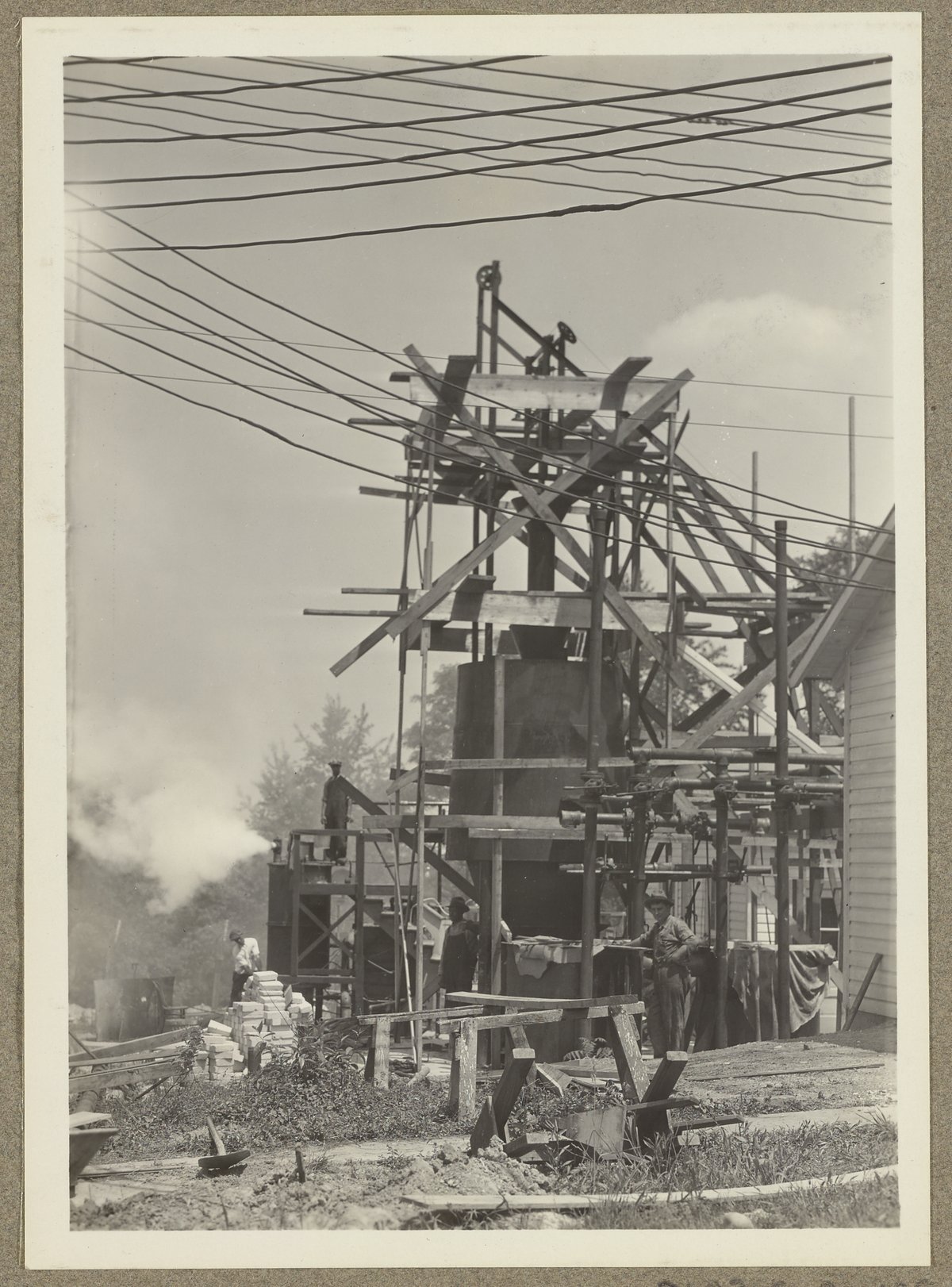 “Construction of Phosphoric Acid Furnace,” May 28, 1930. Travis P. Hignett Collection of Fixed Nitrogen Research Laboratory Photographs, Box 1. Science History Institute. Philadelphia. https://digital.sciencehistory.org/works/q524jn76v.