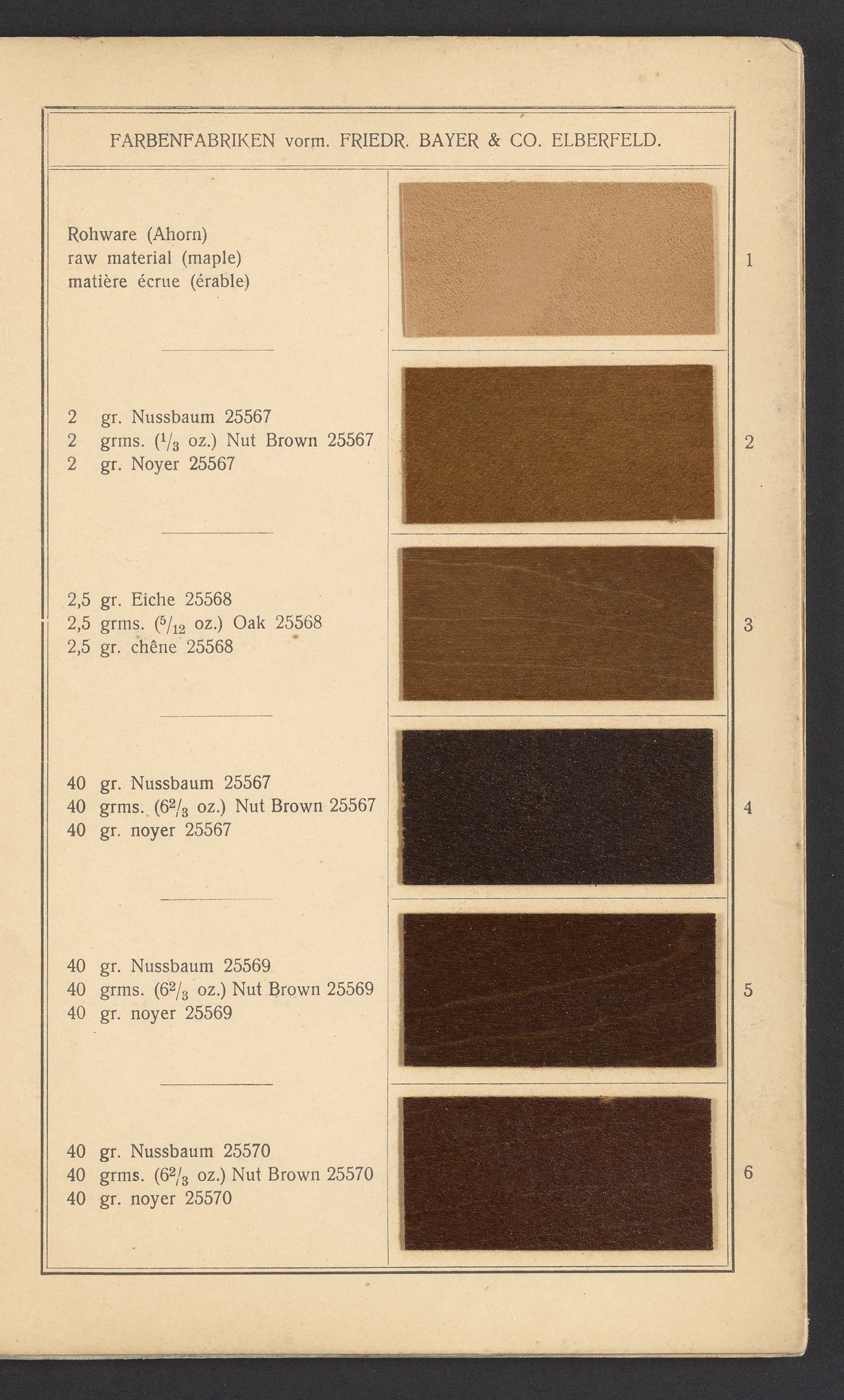 Farbenfabriken vorm. Friedrich Bayer & Co. Colours Fast to Light for Staining Wood. New York (State), 1911. https://digital.sciencehistory.org/works/q5rrjae.
