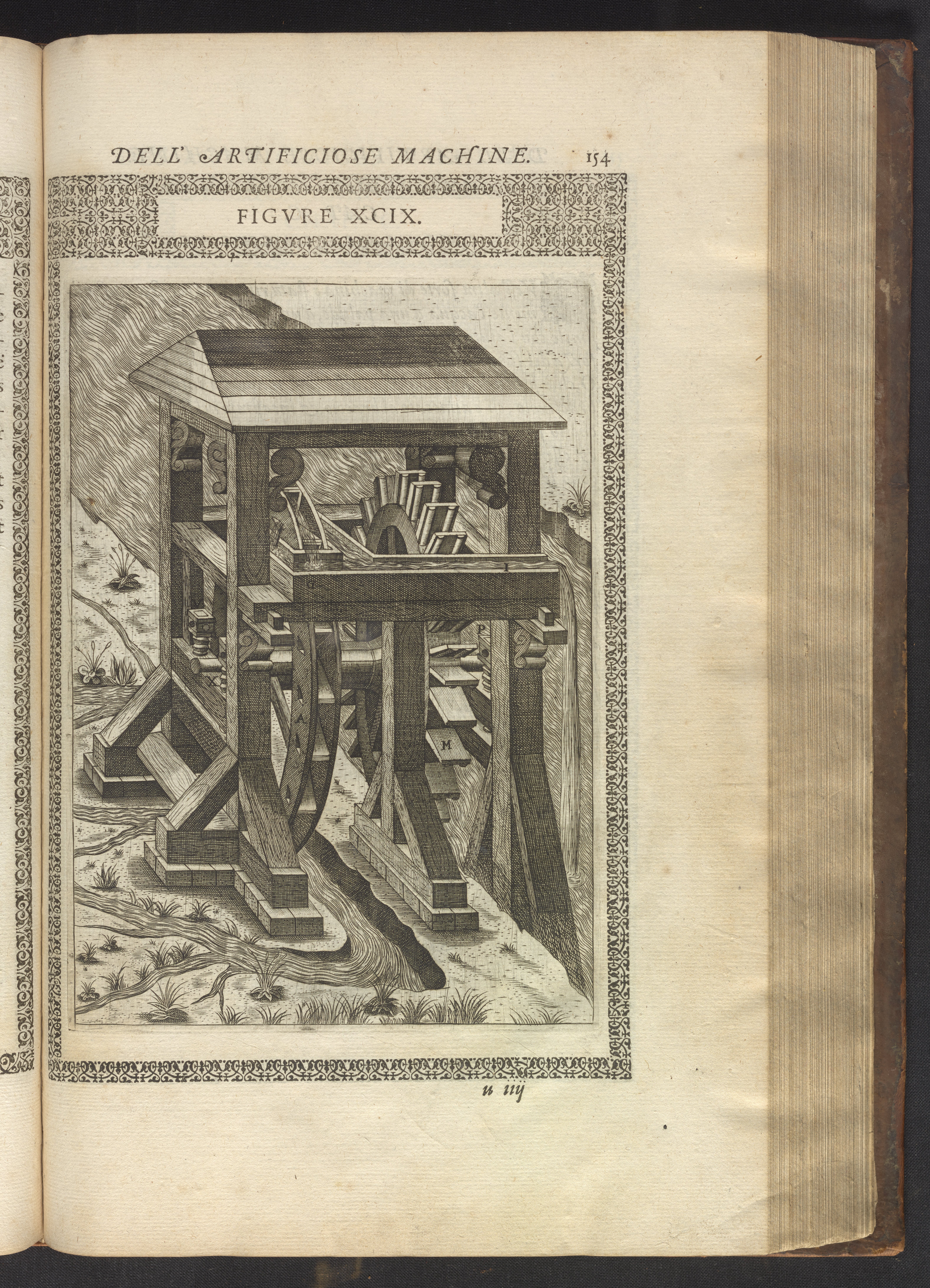 Ramelli, Agostino. “Plate 99: Device for Draining Water from a Swamp or Foundation by River Current.” In Le Diverse Et Artificiose Machine Del Capitano Agostino Ramelli. Paris, France, 1588. https://digital.sciencehistory.org/works/q811kj88w.