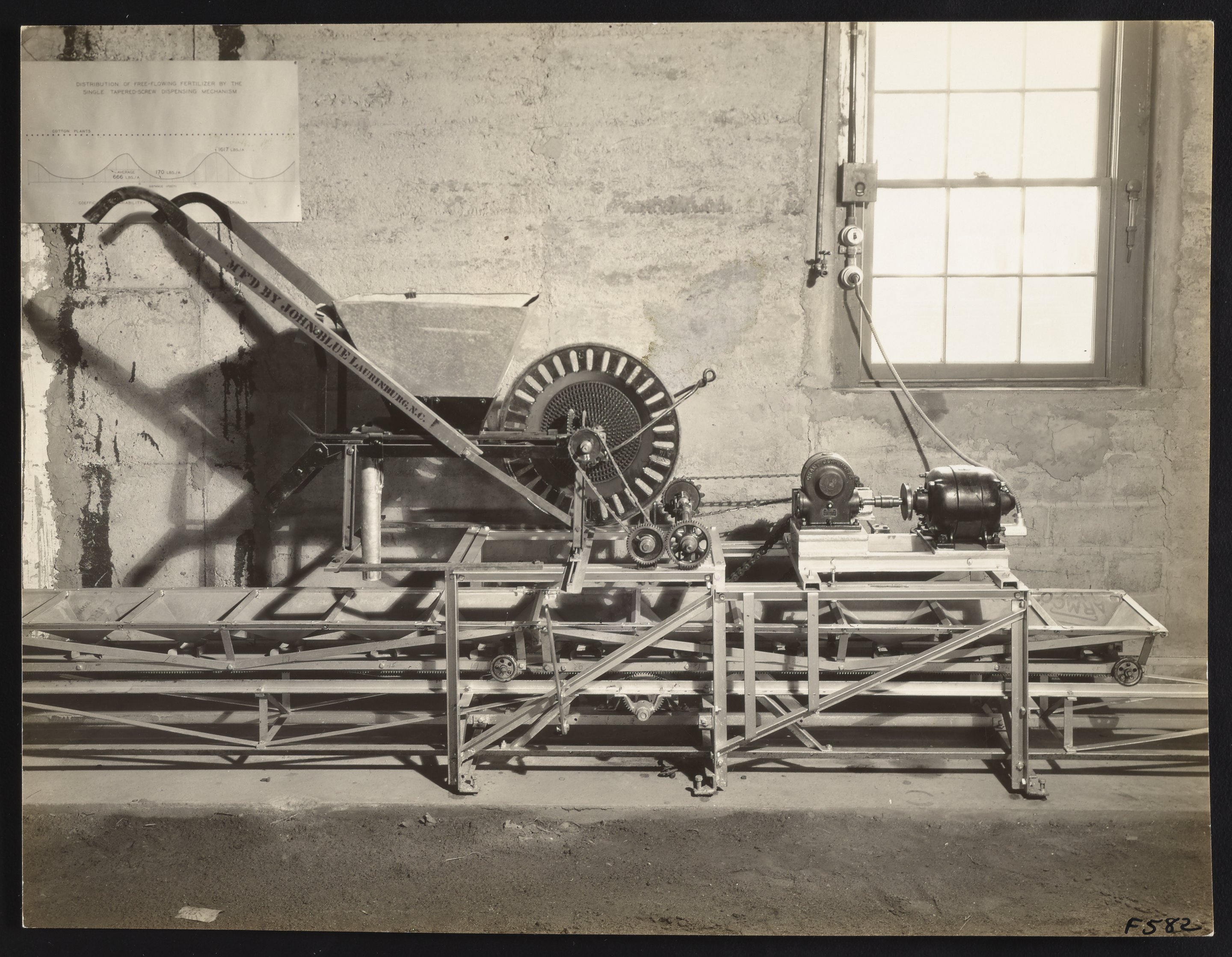 “Fertilizer Testing Apparatus Mounting Frame and Driving Mechanisms,” 1935. Travis P. Hignett Collection of Fixed Nitrogen Research Laboratory Photographs, Box 4. Science History Institute. Philadelphia. https://digital.sciencehistory.org/works/qb98mf48d.