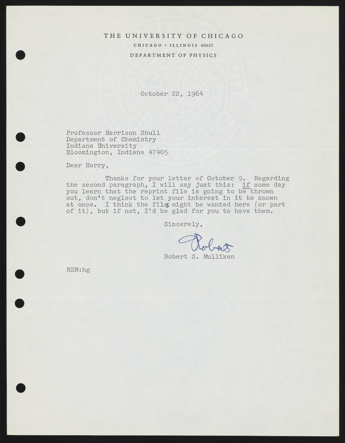 Letter from Robert S. Mulliken to Harrison Shull, 1964