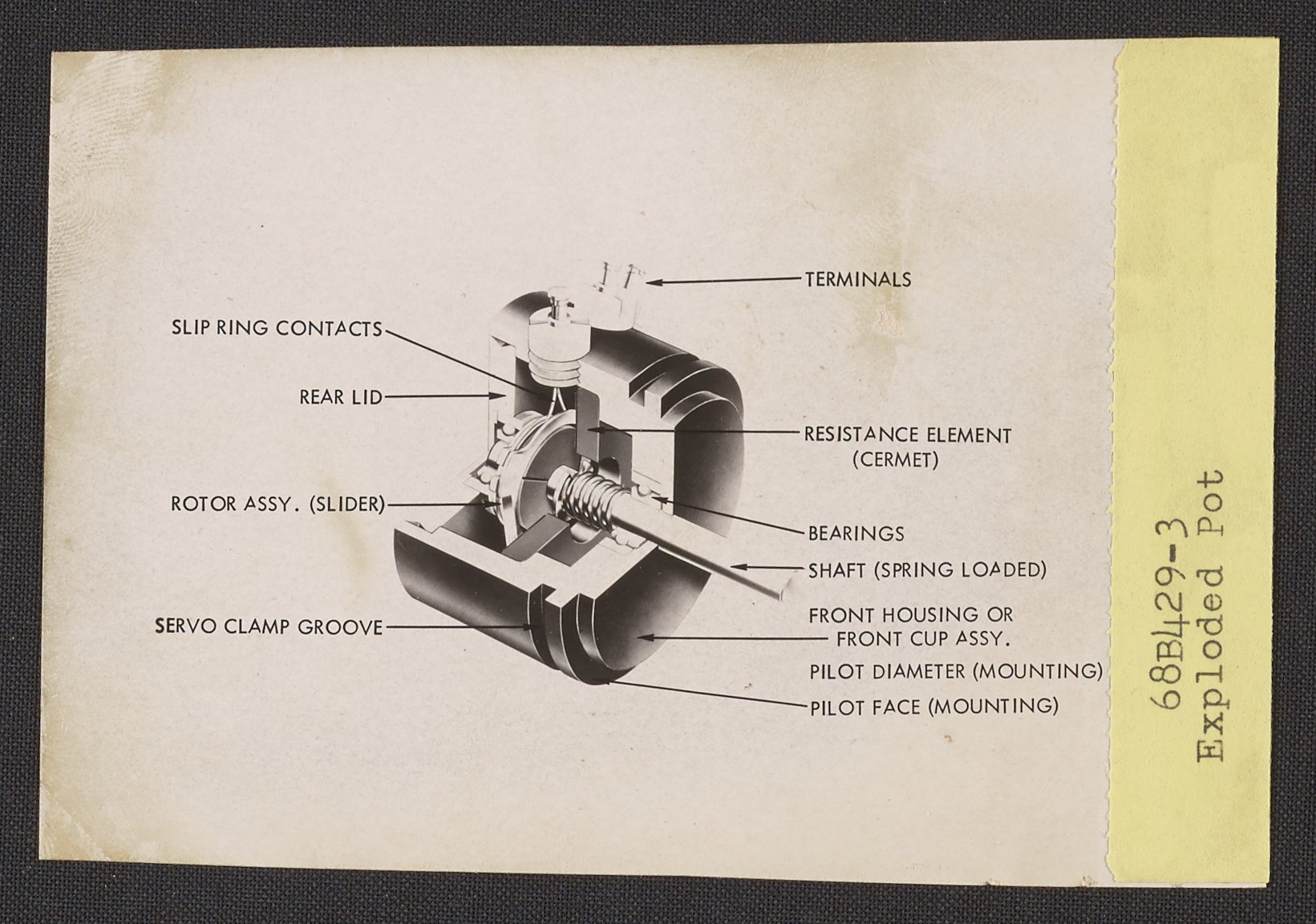The labeled illustration depicts the interior of a potentiometer.