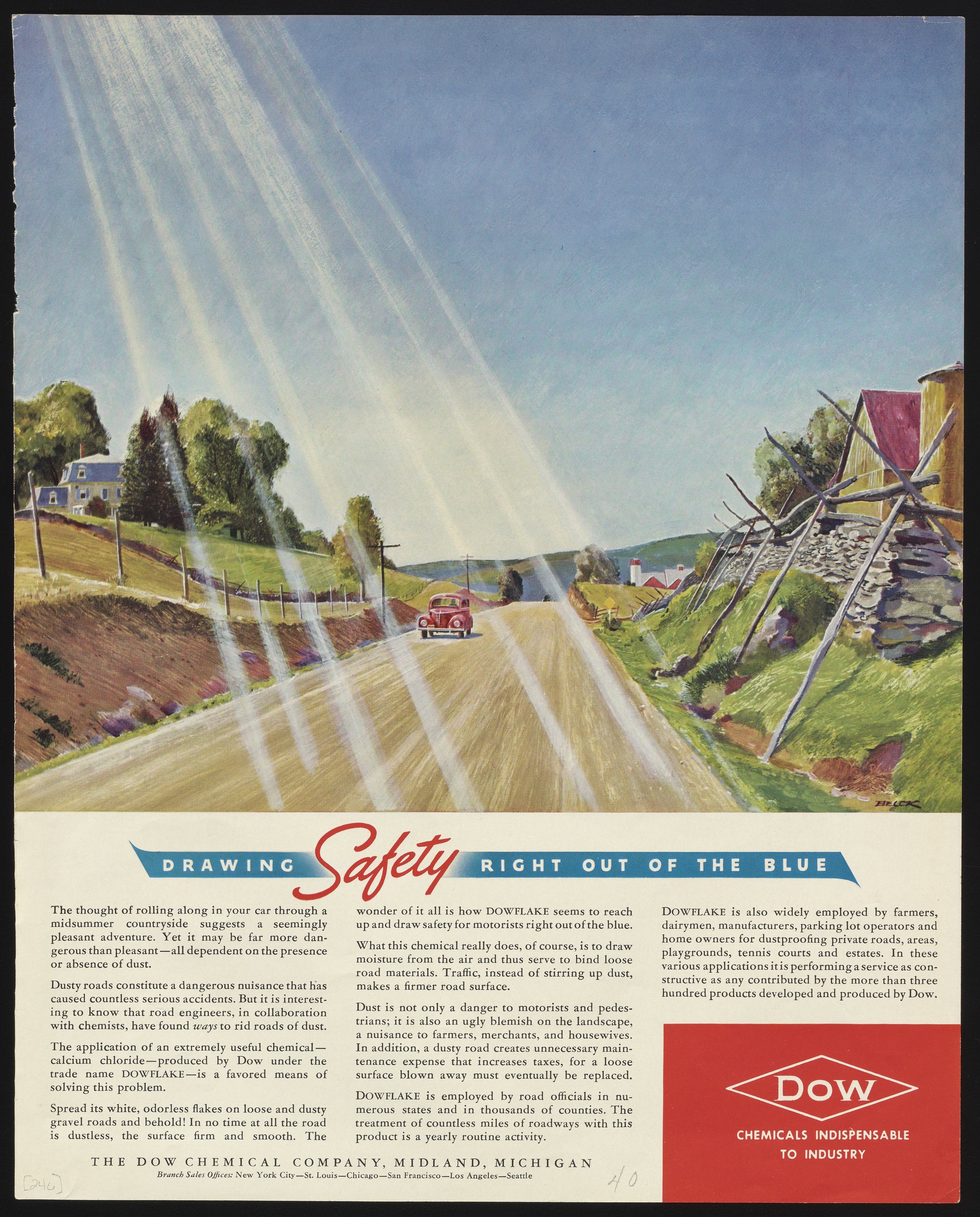 Dow Chemical Company. “Drawing Safety Right Out of the Blue,” 1940. Advertisements from the Dow Chemical Historical Collection, Box 7. Science History Institute. Philadelphia. https://digital.sciencehistory.org/works/qb98mg241.