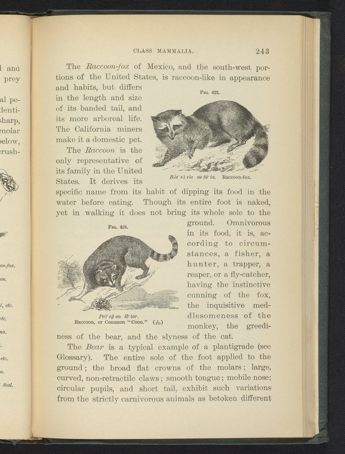 Steele, Joel Dorman, and Jenks, J. W. P. (John Whipple Potter). “Figure 423. Raccoon-Fox. Figure 424. Raccoon, or Common ‘Coon.’” Popular Zoology. New York, New York: Chautauqua Press, 1887. https://digital.sciencehistory.org/works/qb9i4rb.