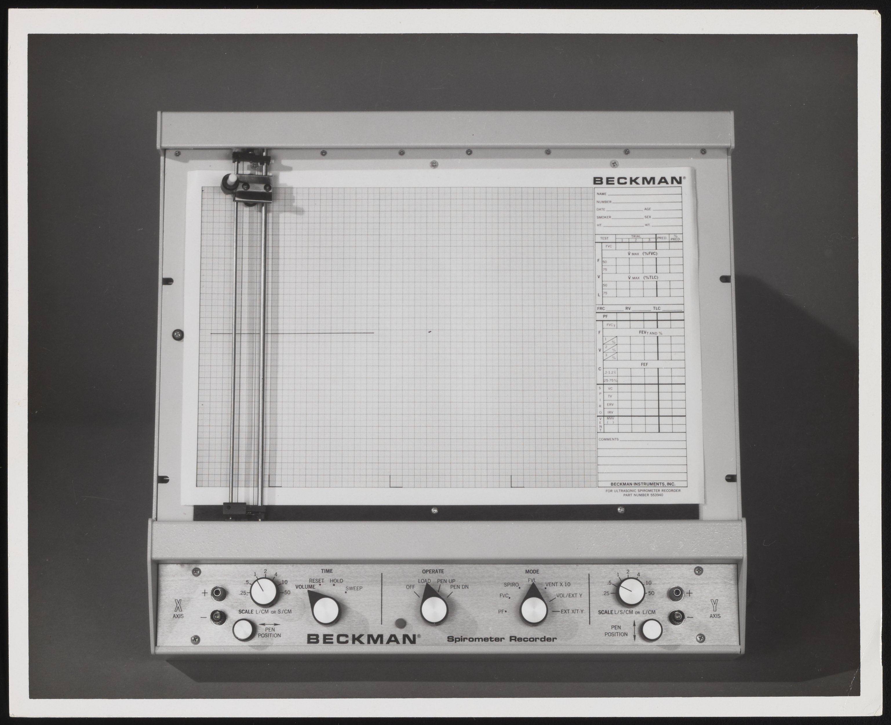“Beckman Spirometer Recorder,” n.d. Beckman Historical Collection, Box 81. Science History Institute. Philadelphia. https://digital.sciencehistory.org/works/qf85nb463.