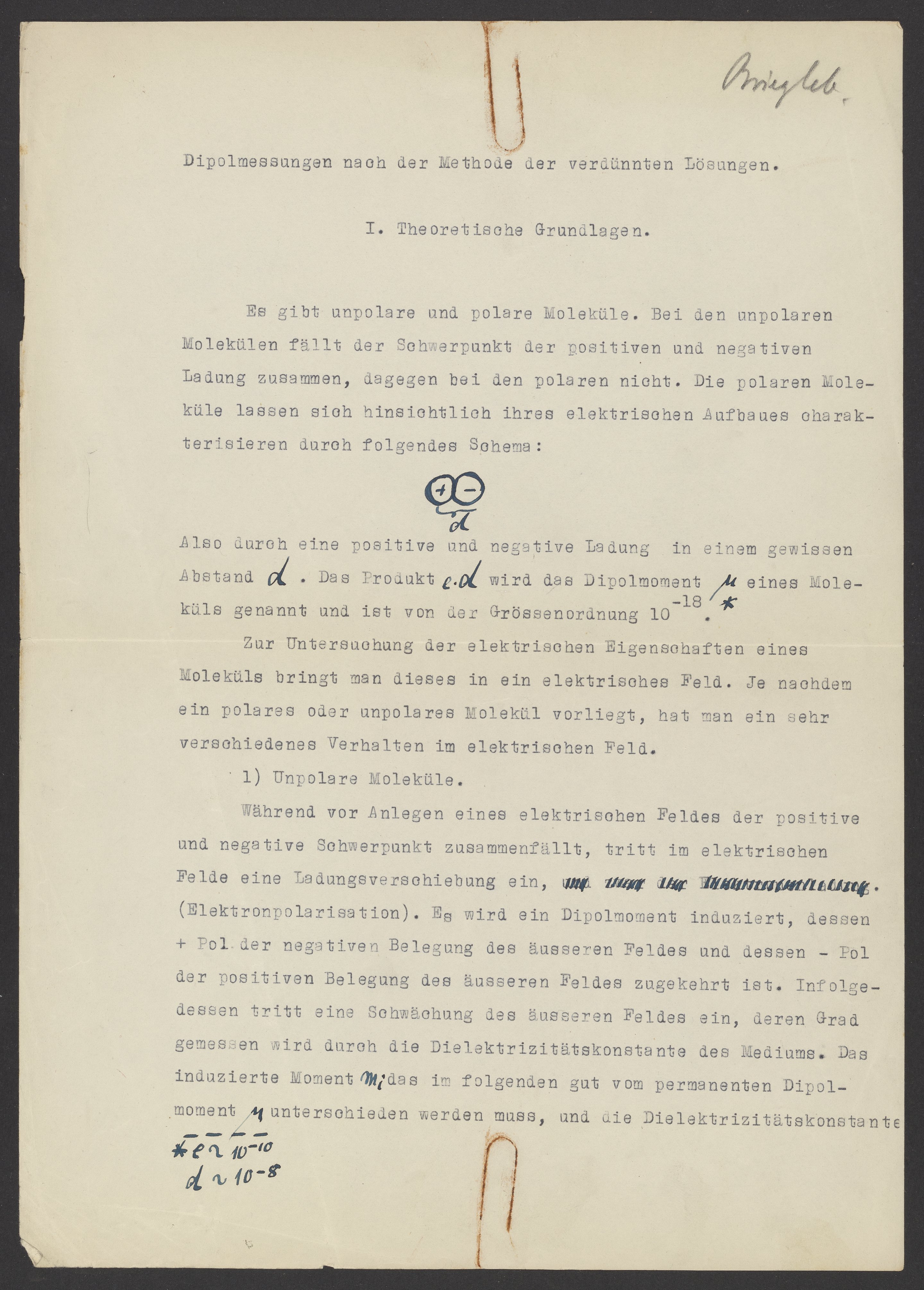 Dipol Messungen nach der Methode der verdünnten Lösungen