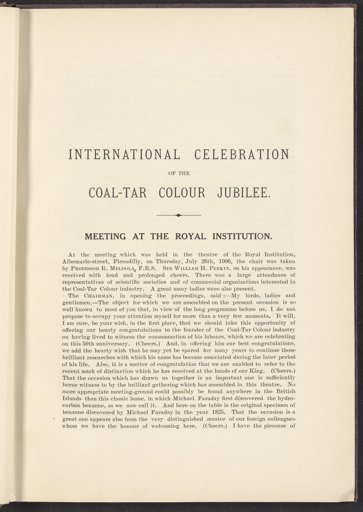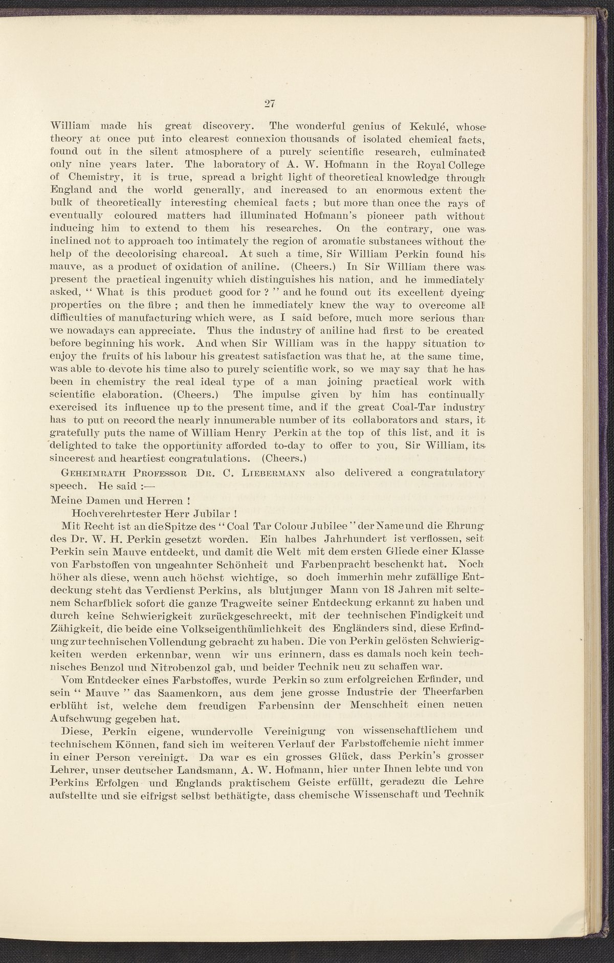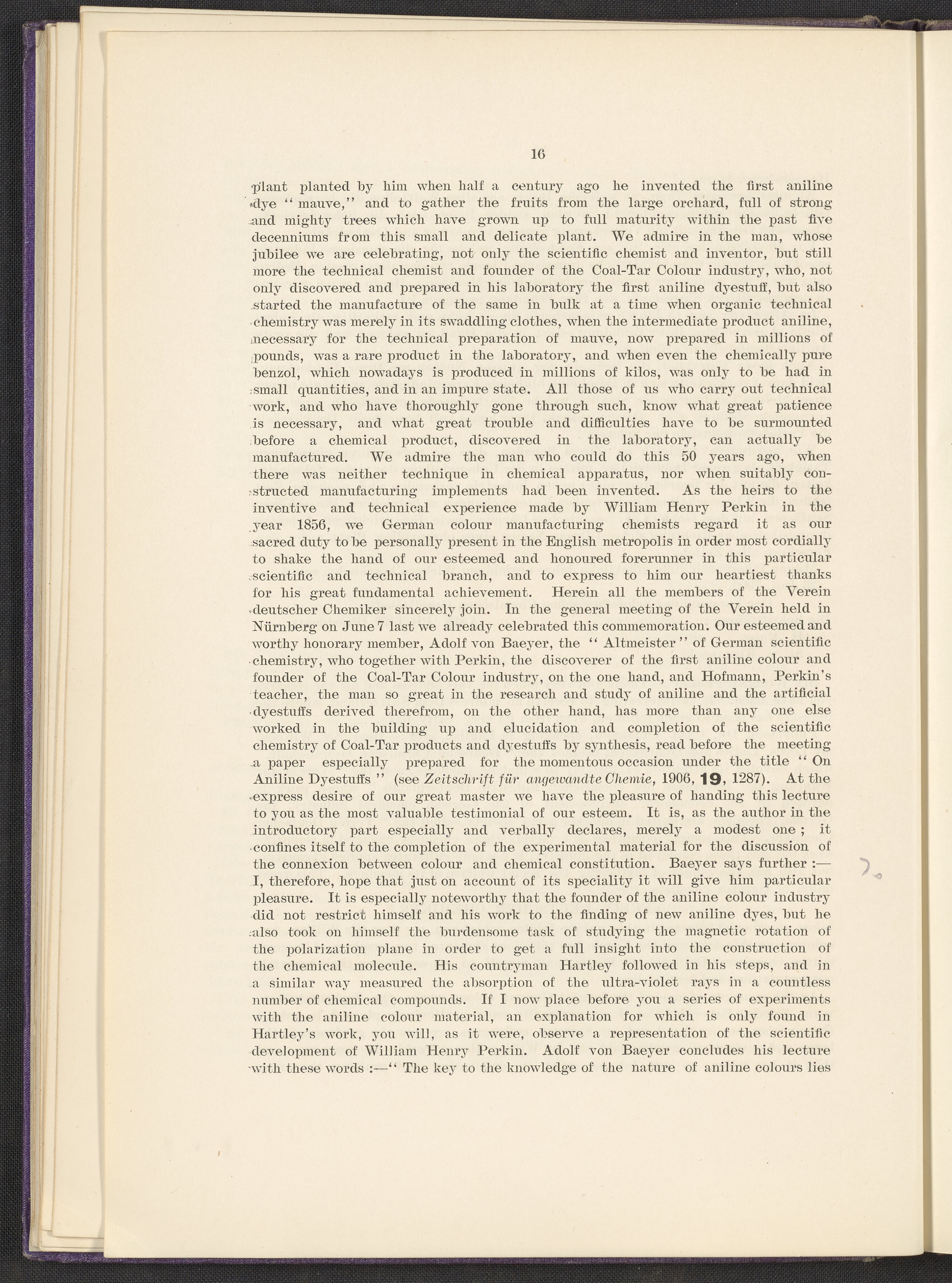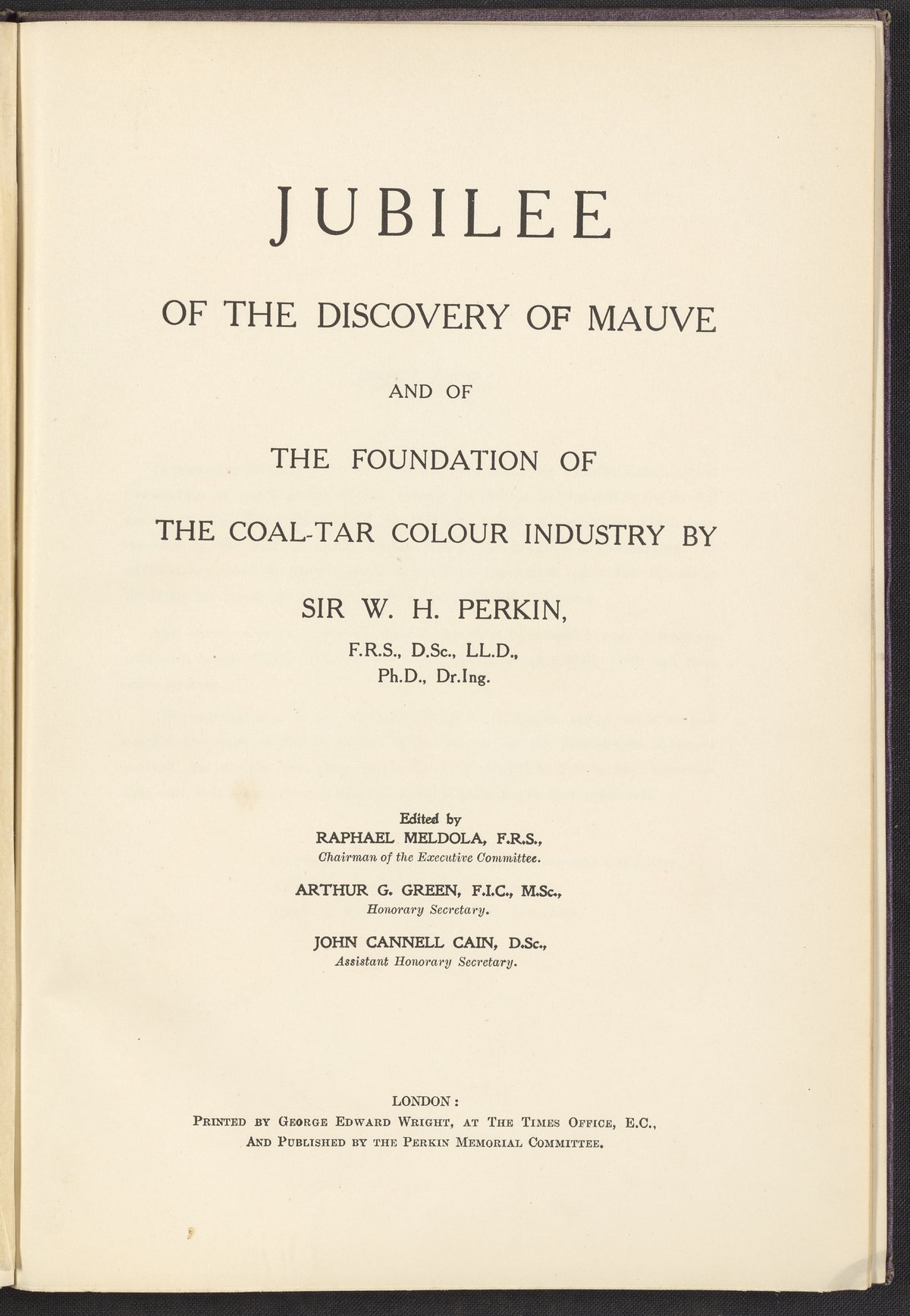 Jubilee of the Discovery of Mauve and of the Foundation of the Coal-Tar Colour Industry
