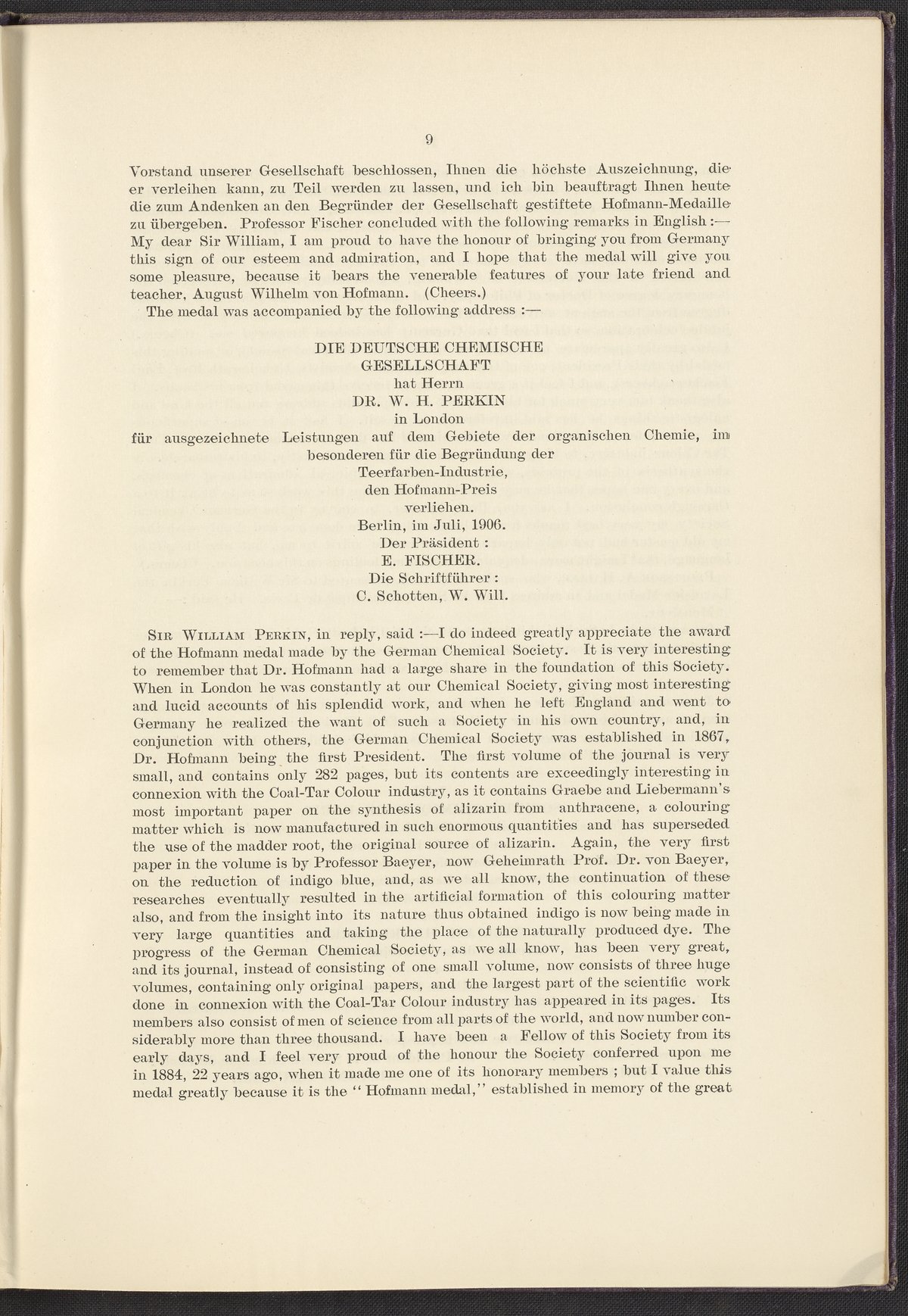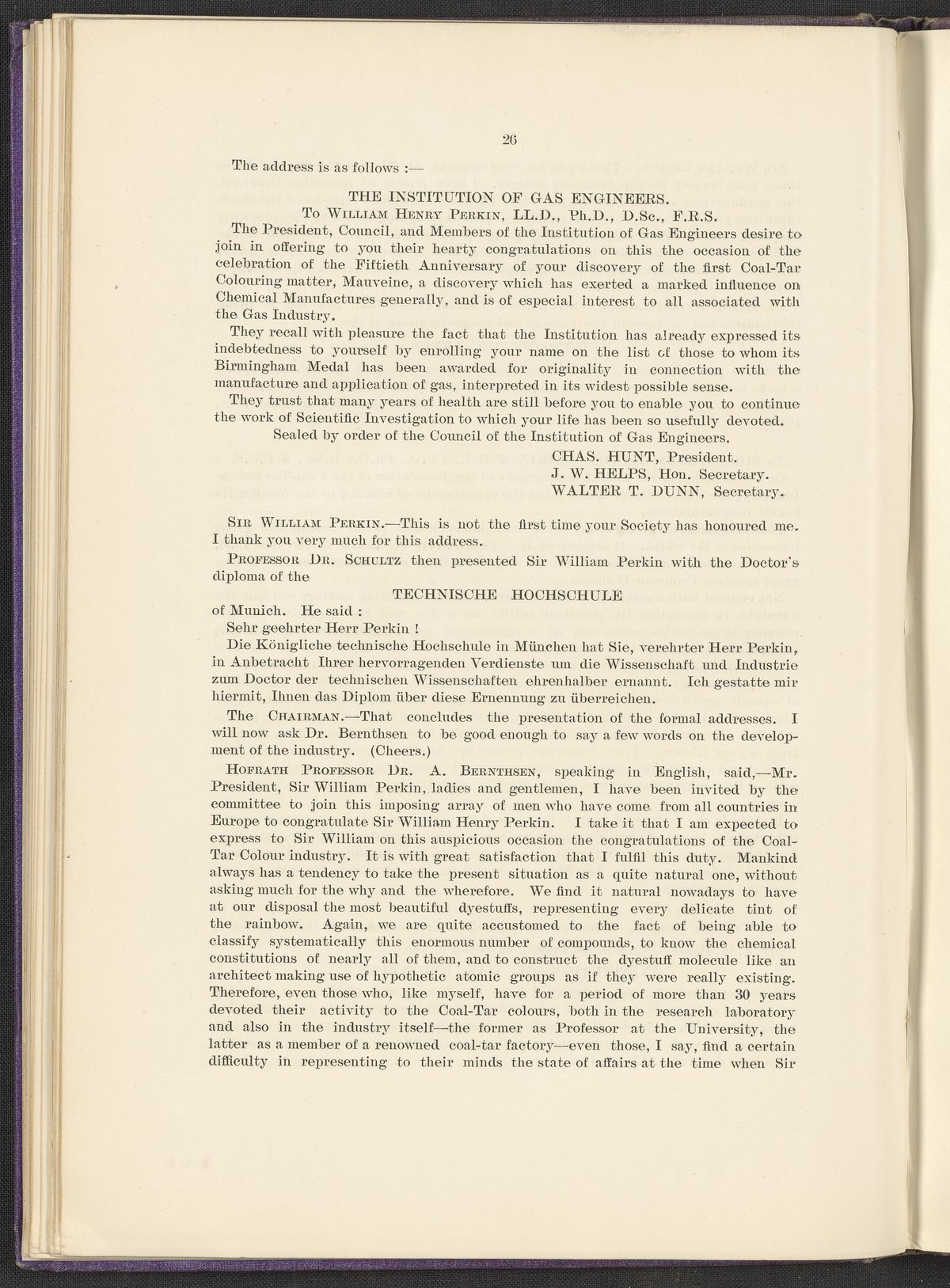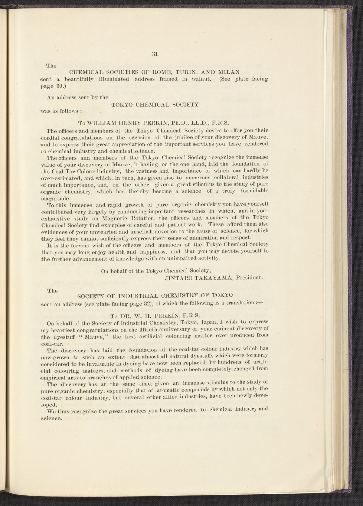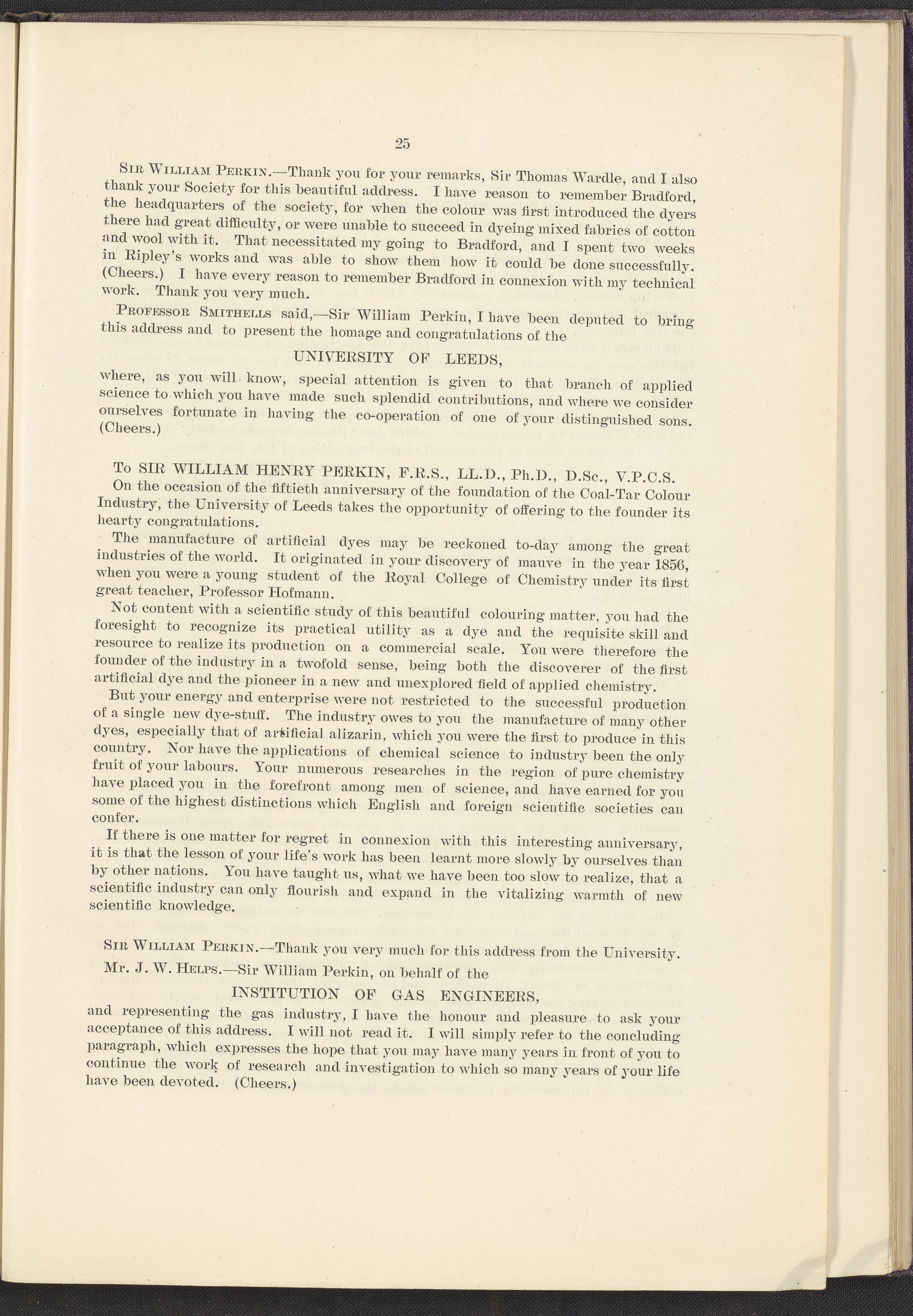 Jubilee of the Discovery of Mauve and of the Foundation of the Coal-Tar Colour Industry