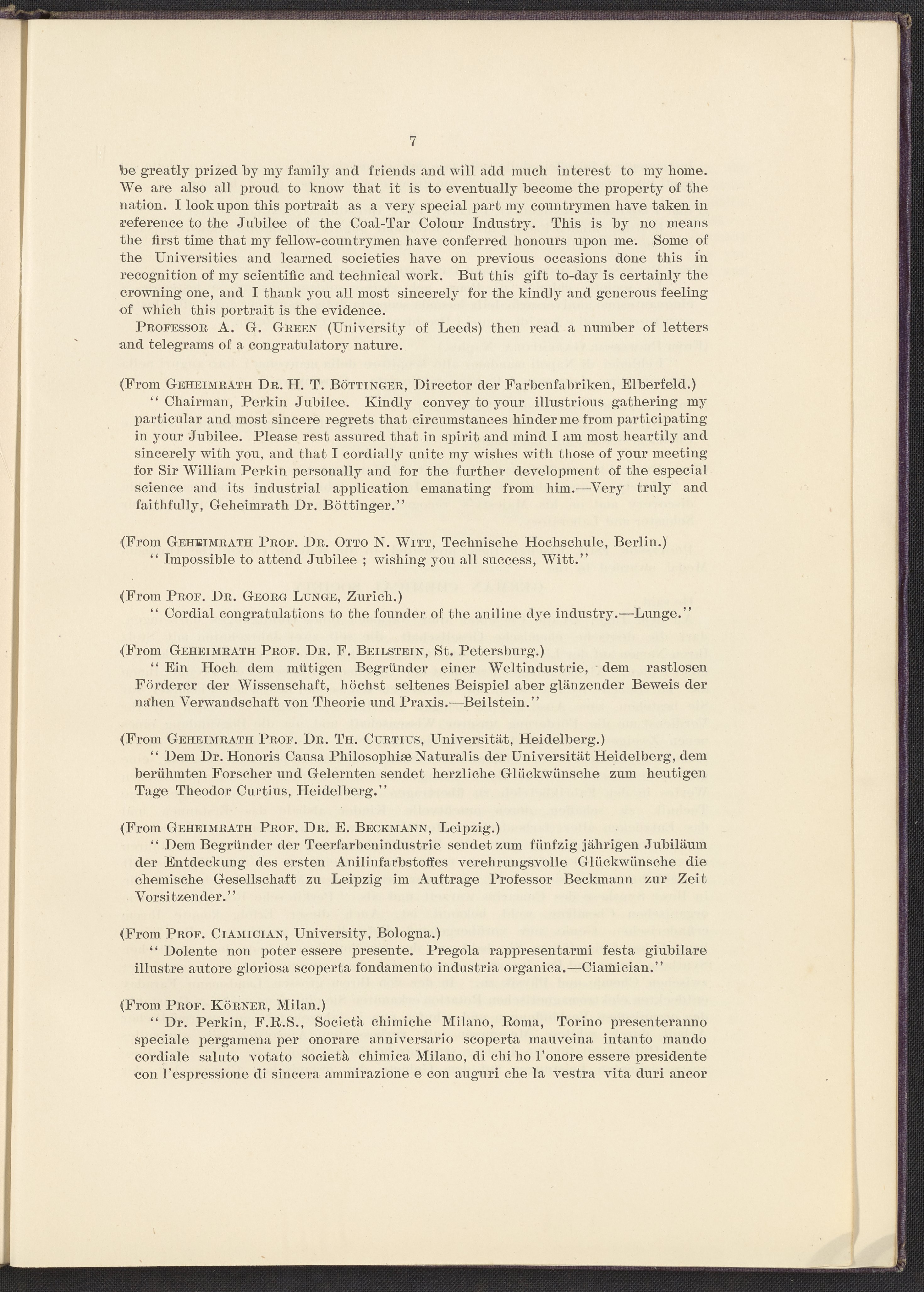 Jubilee of the Discovery of Mauve and of the Foundation of the Coal-Tar Colour Industry