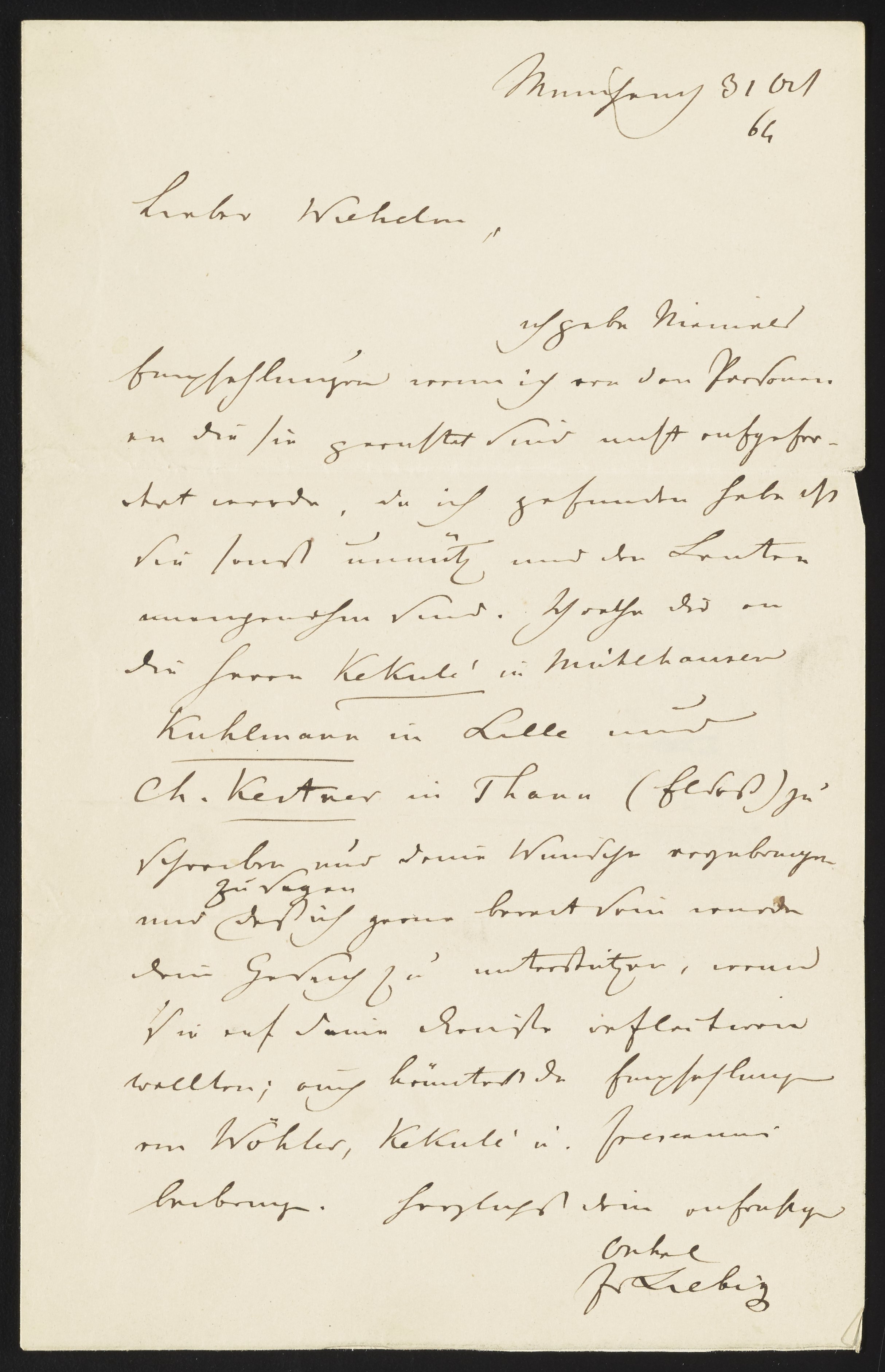 Letter from Justus von Liebig to his nephew