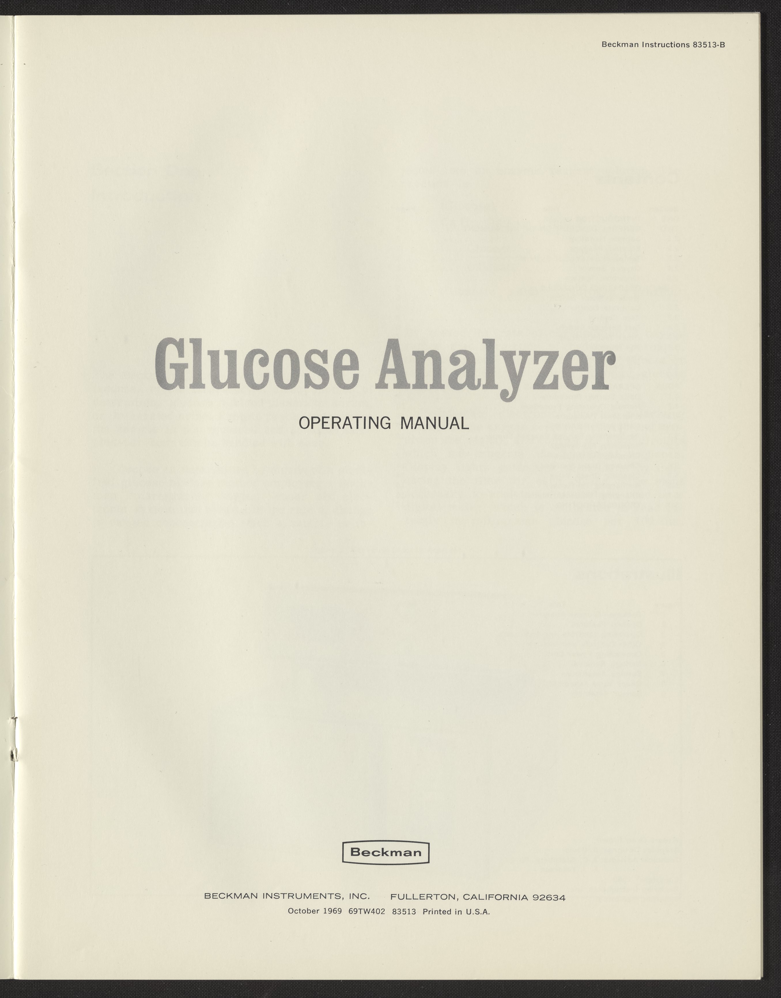 Beckman Instruments, Inc. “Glucose Analyzer Operating Manual,” October 1969. Beckman Historical Collection, Box 113, Folder 90. Science History Institute. Philadelphia. https://digital.sciencehistory.org/works/qj72p746b.