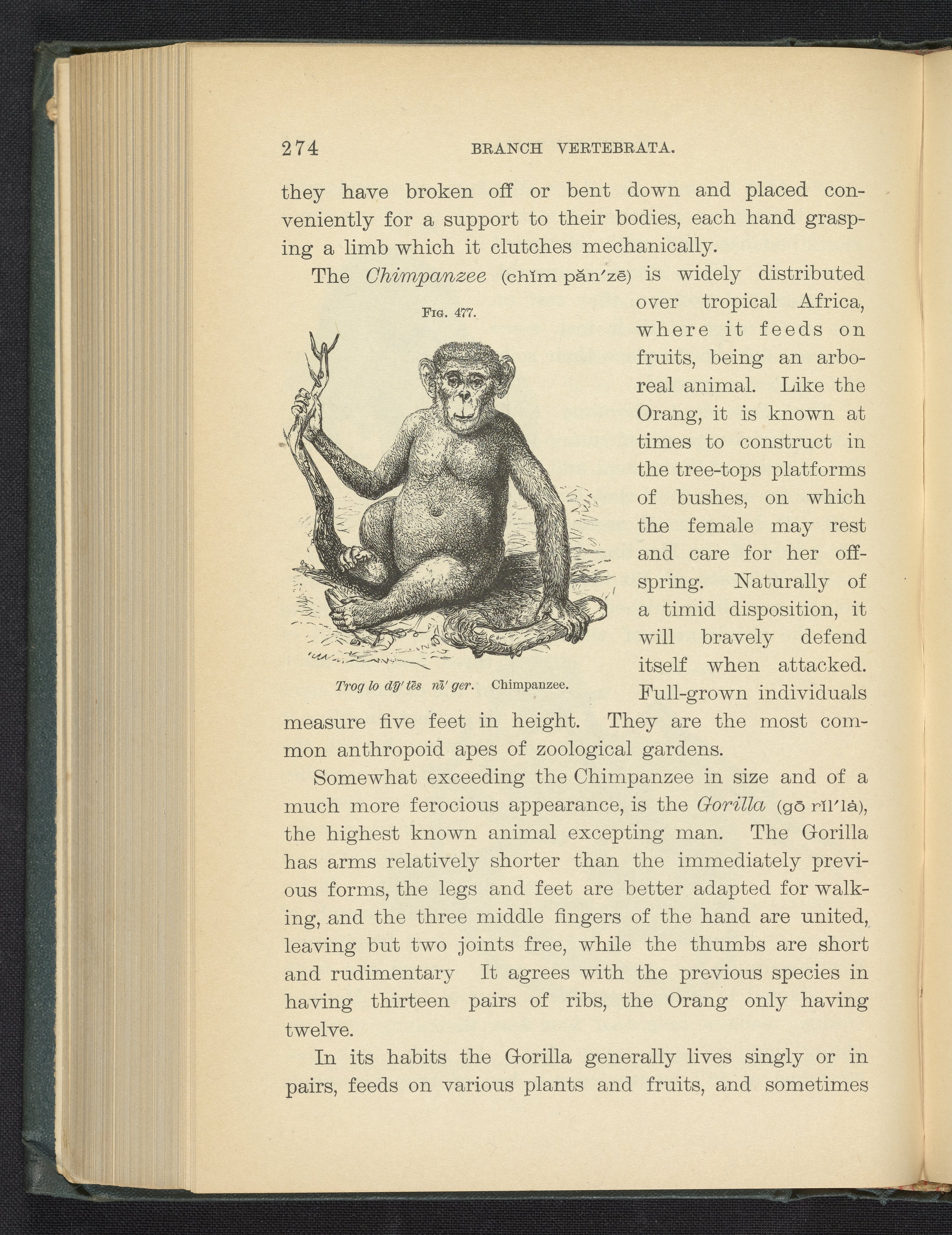 Steele, Joel Dorman, and Jenks, J. W. P. (John Whipple Potter). “Figure 477. Chimpanzee.” Popular Zoology. New York, New York: Chautauqua Press, 1887. https://digital.sciencehistory.org/works/qk6pf9k.