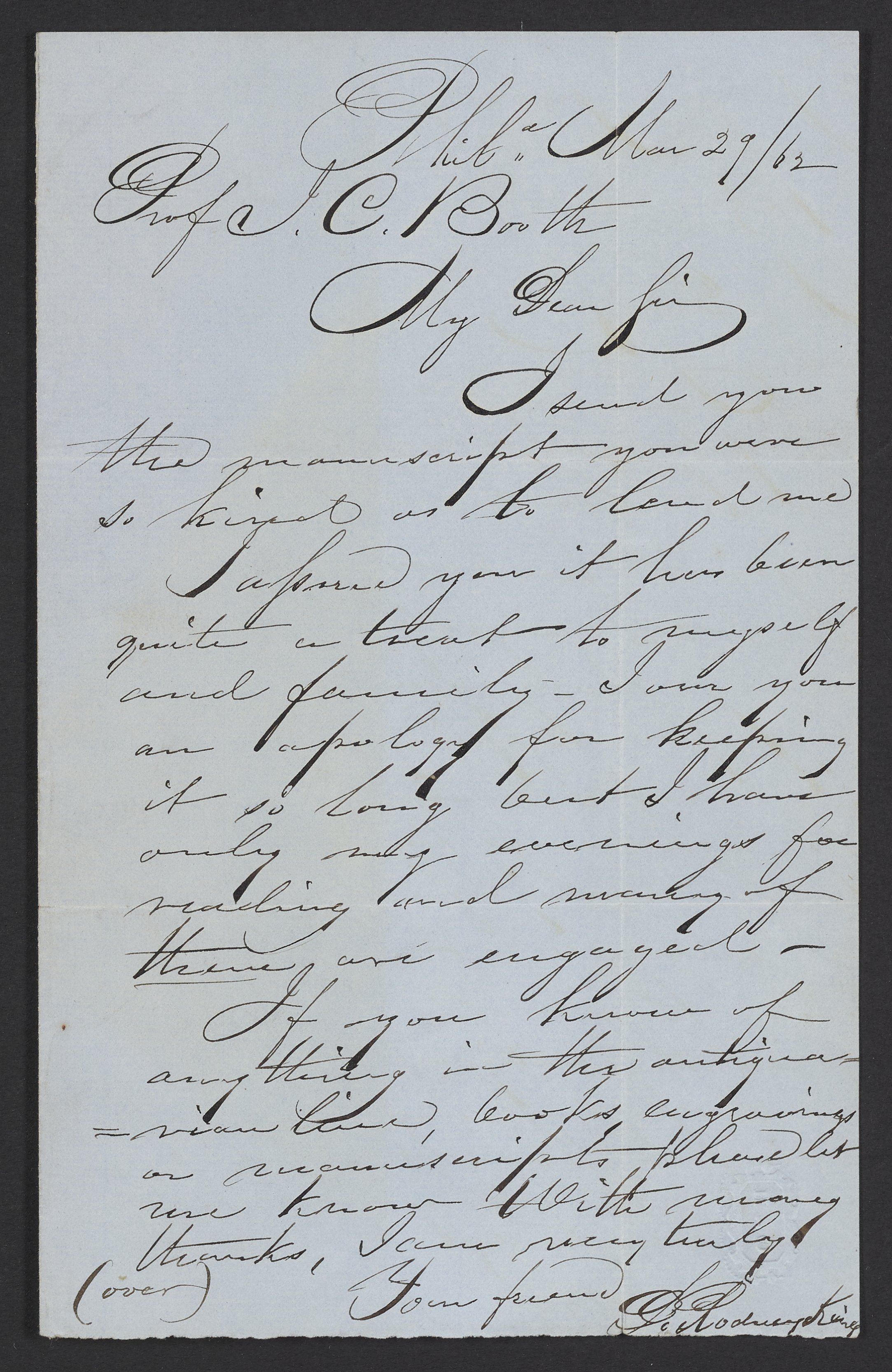 Letter from D. R. King to James Curtis Booth